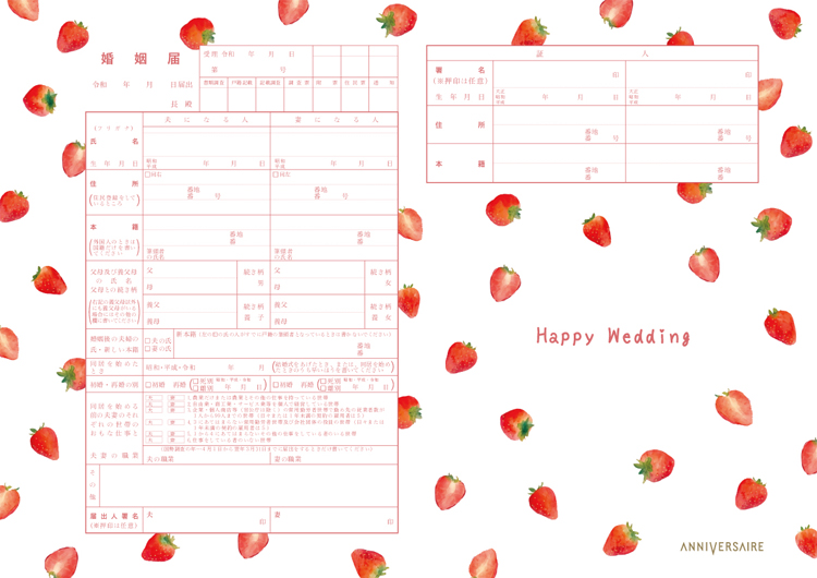 ※自治体によっては、その自治体以外が発行したデザイン婚姻届は受理しない、という場合もあります。事前に受理してもらえるか提出予定の役所へご確認をおすすめします。