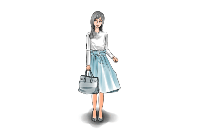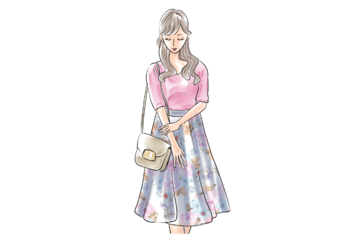 スカートにもさまざまなデザインがありますが、ボディラインがくっきりと出るタイトなスカートやミニ丈、足首まであるロング丈より、ひざ下丈のものがおすすめ。フレアスカートは、エレガントで上品な印象を与えることもできます。