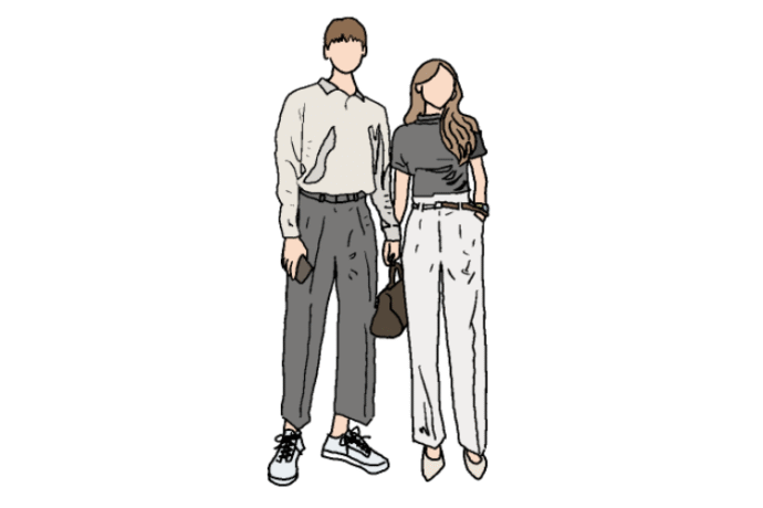 韓国カップルのように、全身を揃えるのではなく色味やシルエットを合わせることで、程よいお揃い感が演出できます。人気のアイボリーやグレージュ、ブラックなど落ち着いたトーンを選べば、大人っぽくまとまりやすく、写真映えもばっちり。比較的安価なブランドも多いため、気軽に挑戦できる価格帯なのもうれしいポイントです。