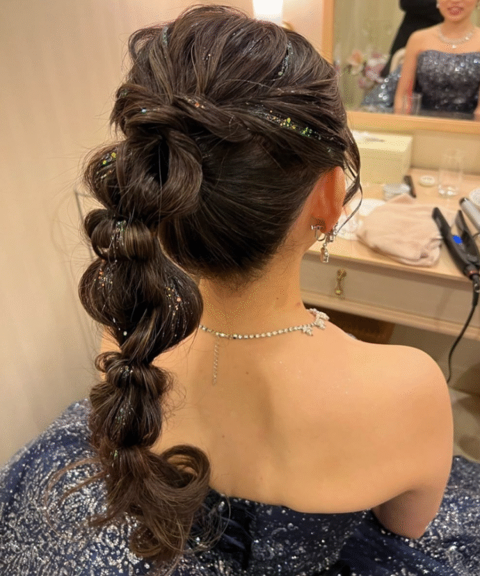 ⑨ビジューヘッドアクセサリーの大人ポニー