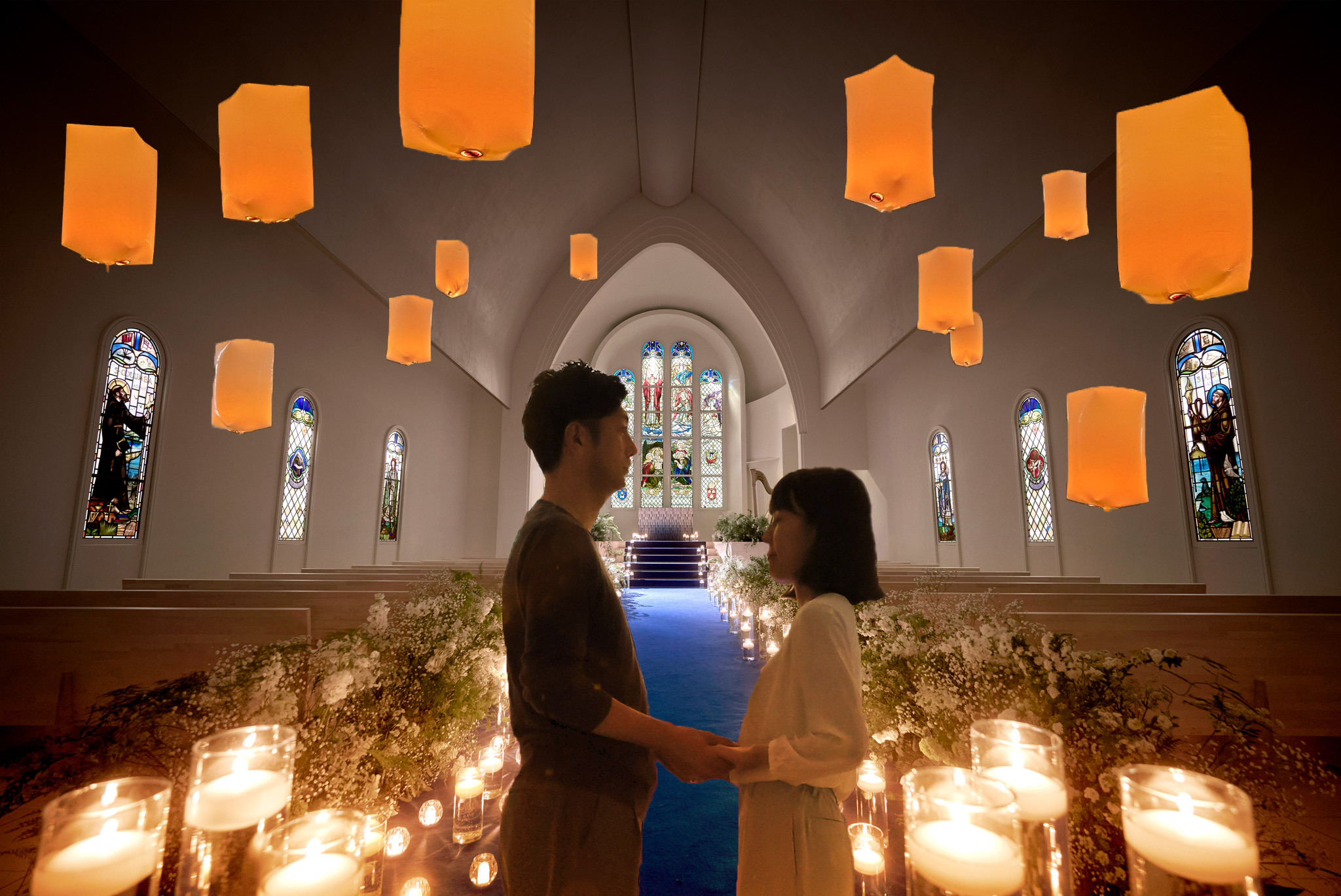 本場タイのランタン祭りも毎年11月に“感謝と厄払い”を願って開催されており、その想いを重ねました。11月23日「いい夫妻の日」になぞらえて、23組一斉にバルーンランタンをリリースしていただきます。表参道店ではチャペル内にて、みなとみらい横浜店では夜空に浮かぶ幻想的な体験を通じて、ロマンティックな思い出づくりをお手伝いさせていただきます。
