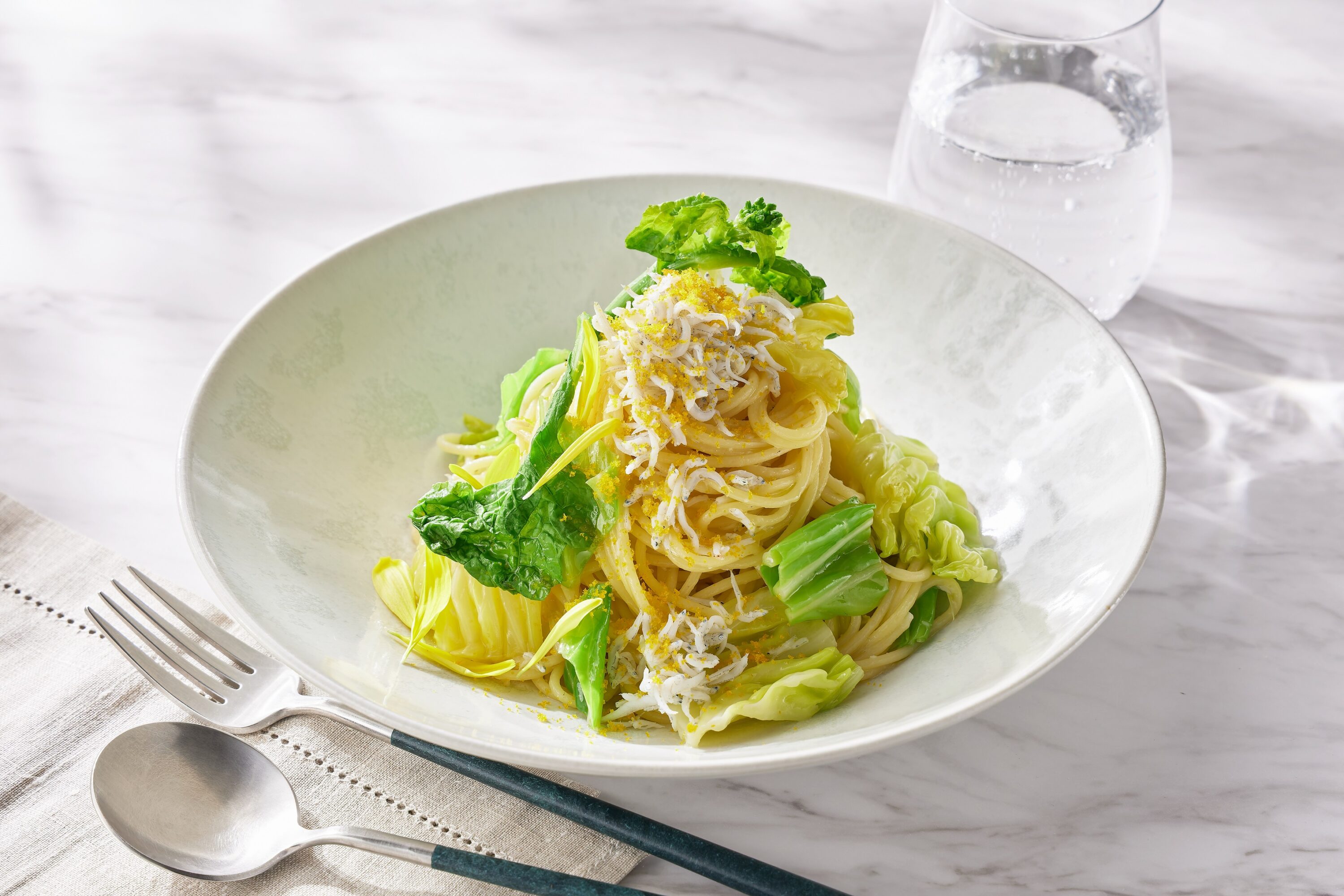 ・春野菜としらすのパスタ カラスミのミモザ仕立て スパゲッティーニ 2,200円