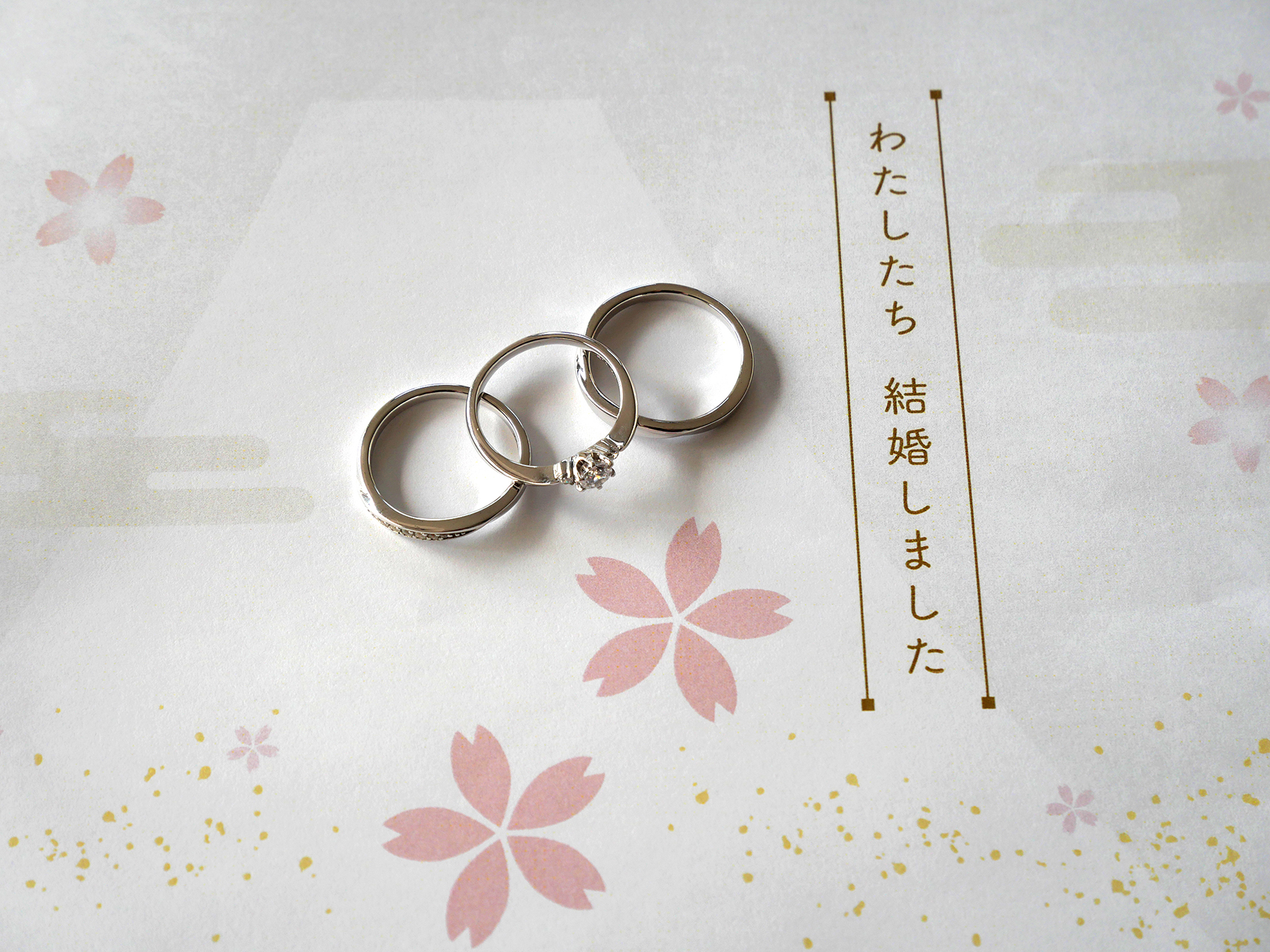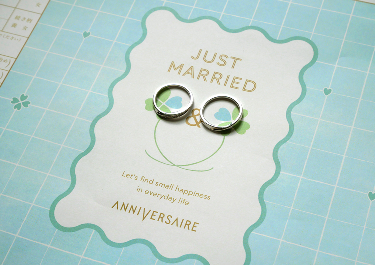 幸運のシンボル、四葉のクローバーがモチーフのデザイン。これから始まる長い結婚生活の中で、日々の小さな幸せを見つけ出し、喜び合えるふたりでありますように。そんな願いを込めています。