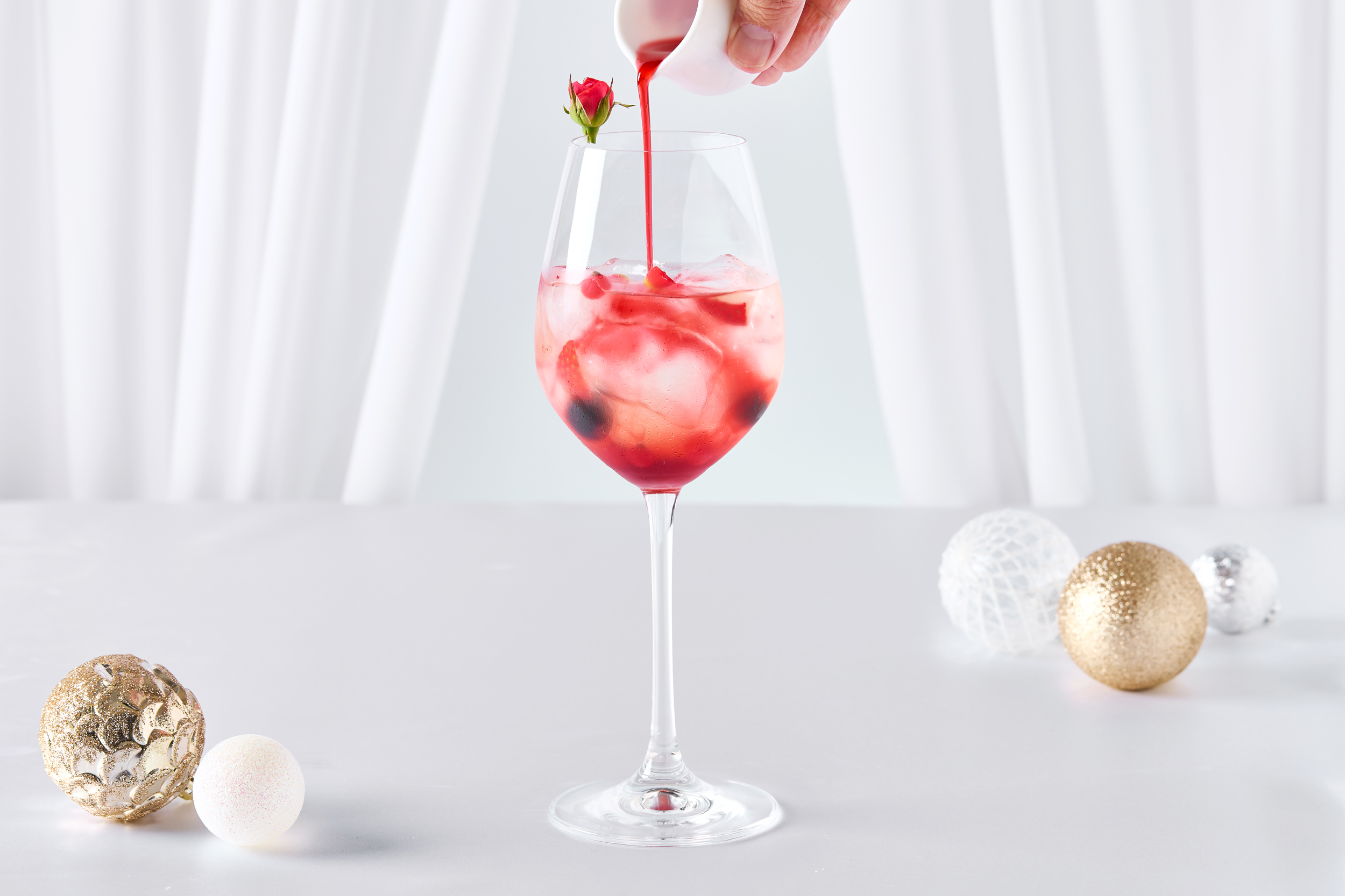 冬のカフェタイムを彩る、クリスマス限定ドリンク5種が登場。「ホワイトチョコレートモカ」や「キャラメルロイヤルミルクティー」など、温もりを感じるホットドリンクに加え、華やかなティーソーダ「ローズベリースパークル」もご用意しました。ストロベリーを使った「ストロベリーロワイヤル」や「ローズ・ド・ヴァンブラン」などのアルコールドリンクは、クリスマスコースとのペアリングにもぴったり。白と赤を基調にした彩り豊かなラインナップが、ホワイトクリスマスの世界観を一層引き立てます。