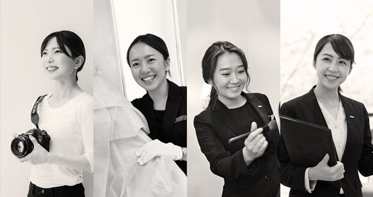 ブライダルを知り尽くした各専門分野のプロスタッフがおふたりをサポート。一生の想い出に残るフォトウェディングを叶えます。