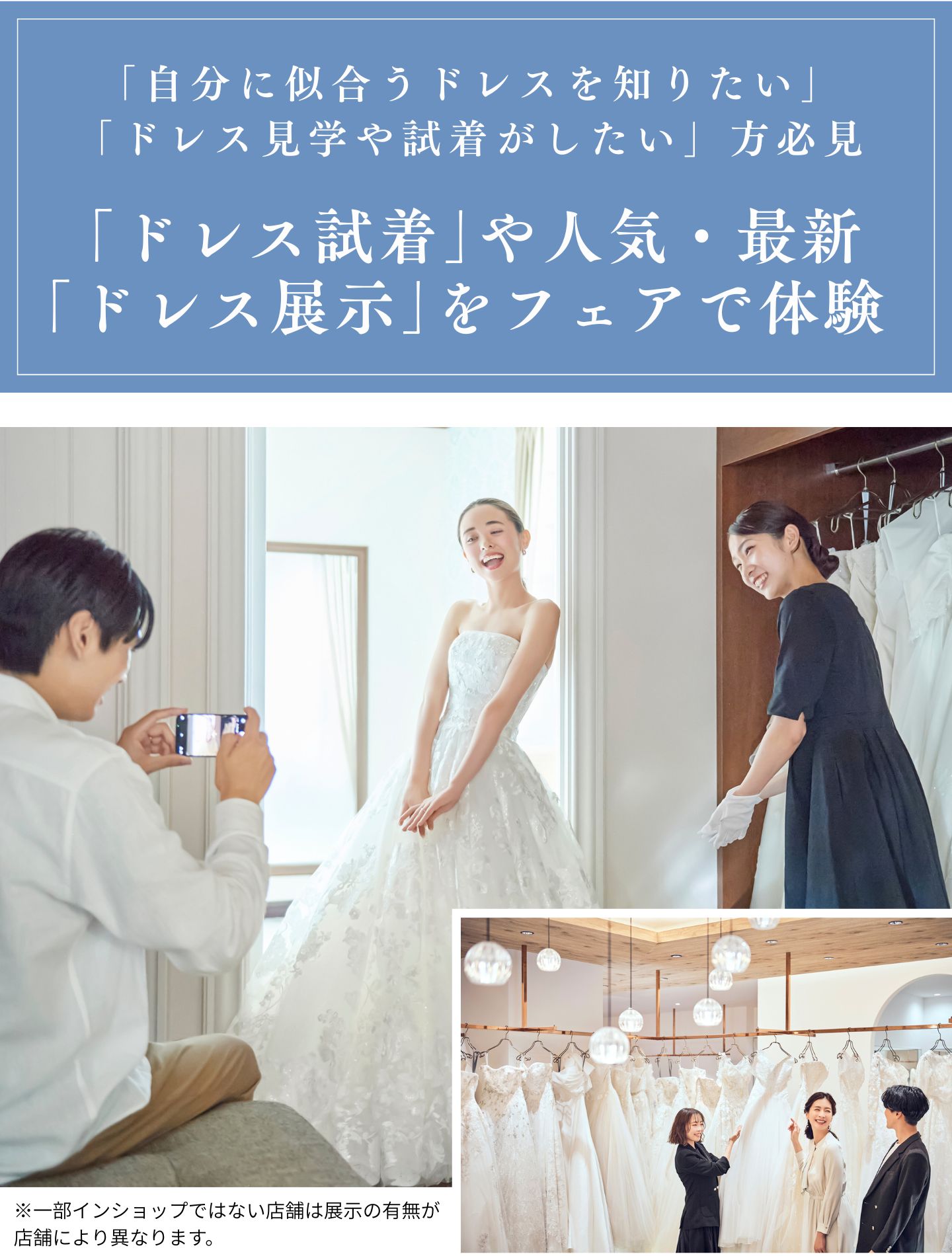 - Q.ブライダルフェアではドレス見学や試着はできますか?