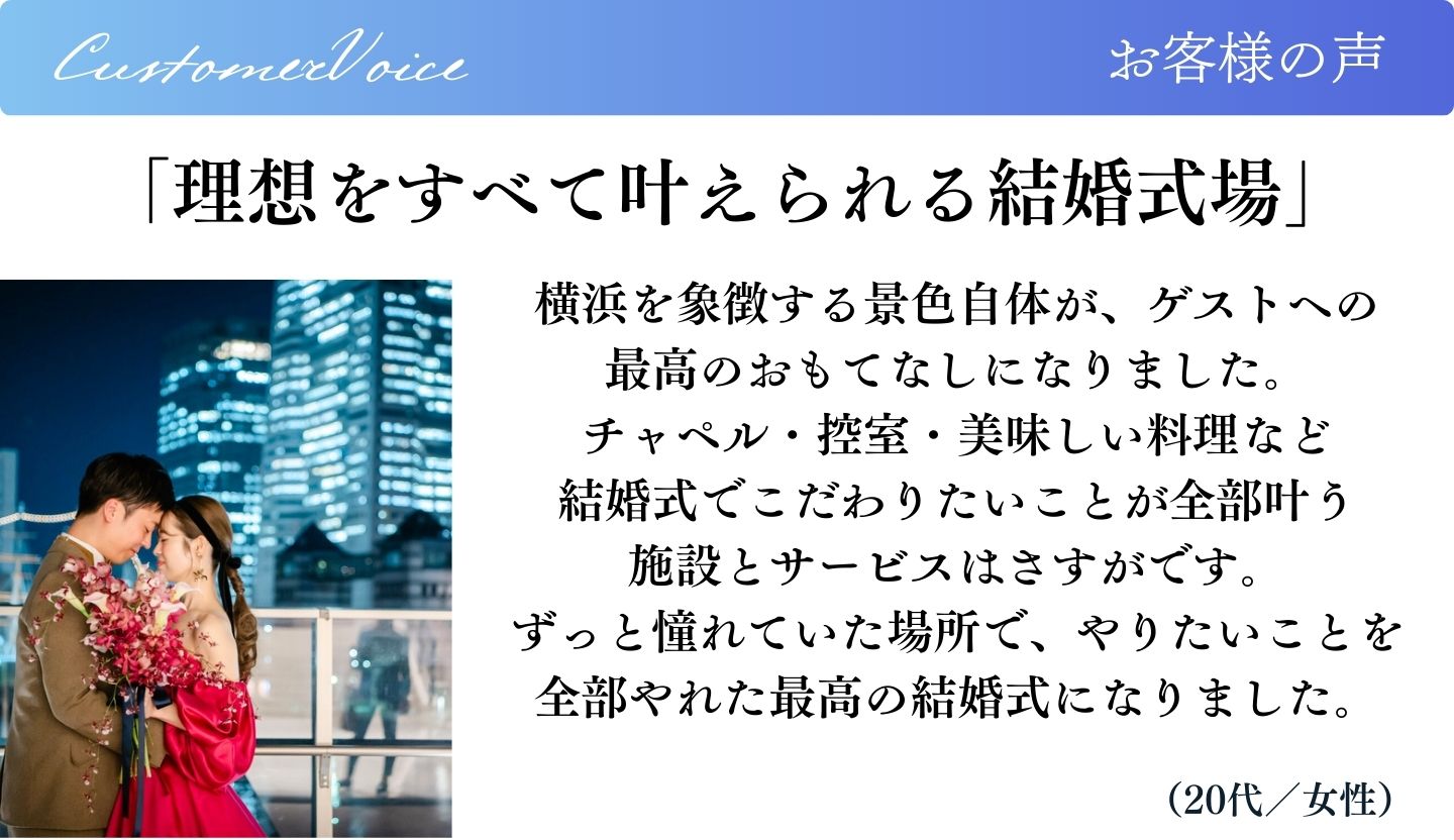 また、横浜・みなとみらいエリアの提携ホテルを特別優待価格でご紹介可能です。親御様や遠方のゲストにも、負担なく安心してお過ごしいただけるサポート体制を整えています。