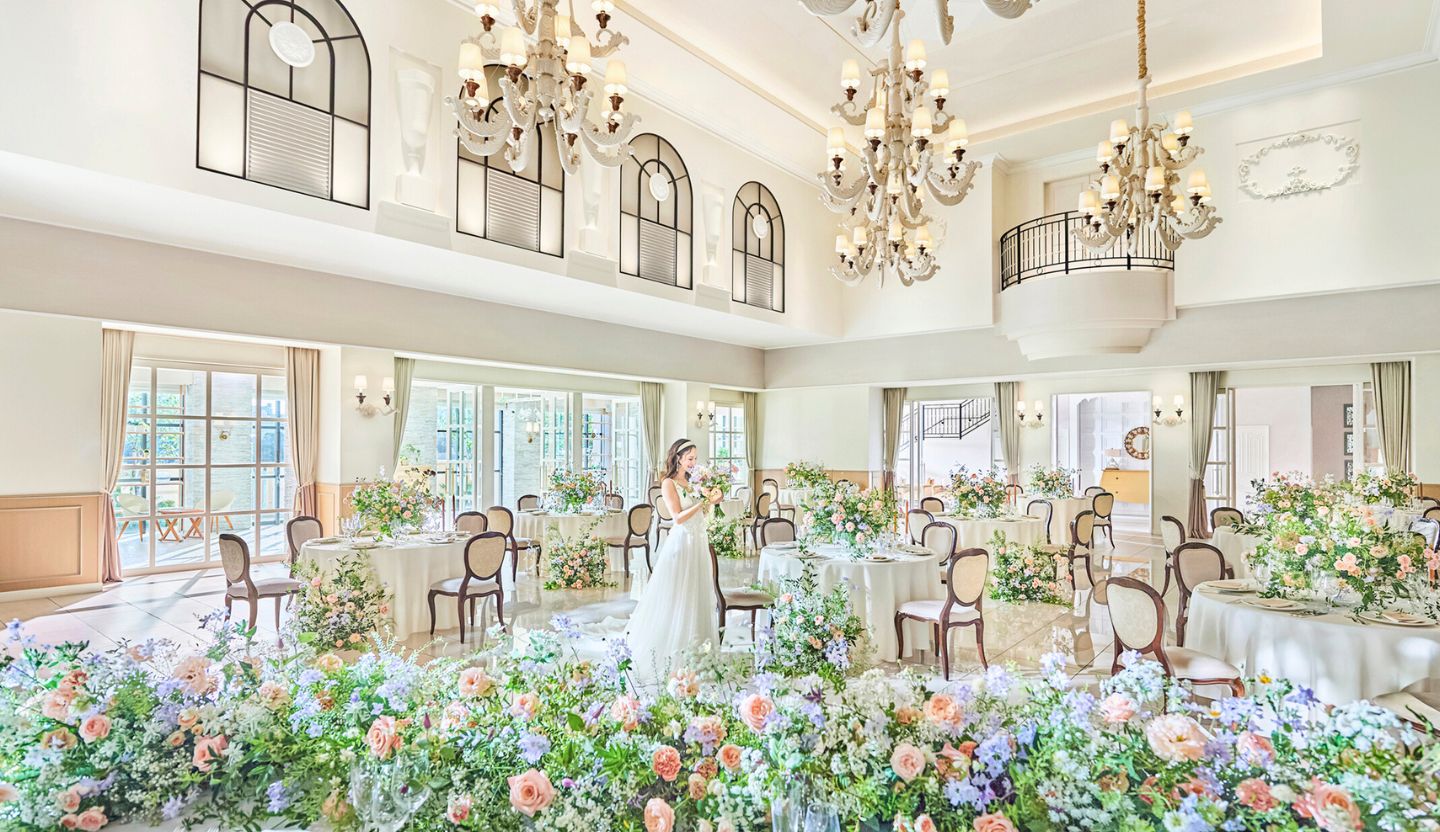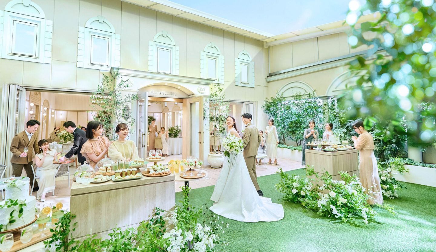 みなとみらい店は、チャペルからパーティ会場まで全て屋内で移動が可能です。ヒルズ横浜店は、全てのガーデンに屋根を完備しているため、雨天でもデザートビュッフェや屋外演出を諦める必要はありません。天候に左右されず、理想の1日を叶えていただけます。