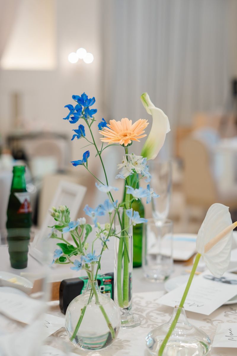式場を決める際は、遠方から駆けつけてくださるゲストのことを考え、交通アクセスの良さを重視して探し、当式場を選んでいただきました。 準備期間中は「妥協はなるべくしないこと」を大切に、相談や打ち合わせを重ねたおふたり。ご自分たちで用意できるものはできるだけ手作りをし、SHEINなどを上手く利用されて、節約しつつもセンスの良いものを揃えていらっしゃいました。