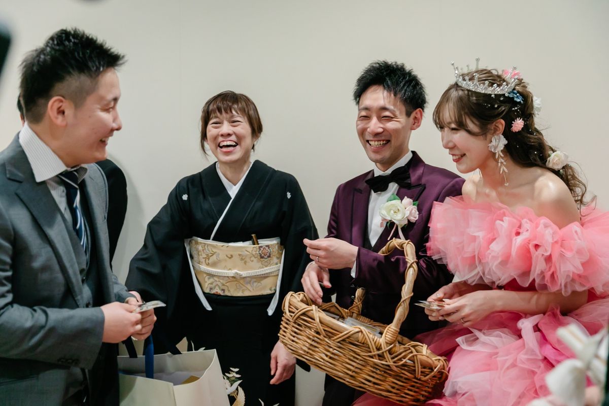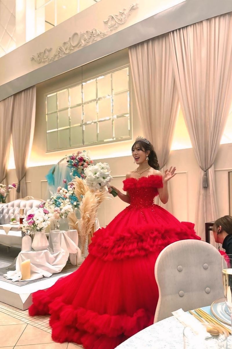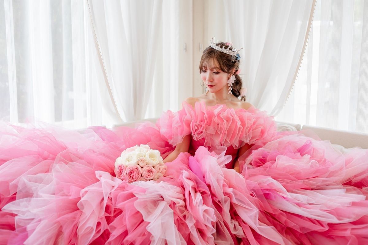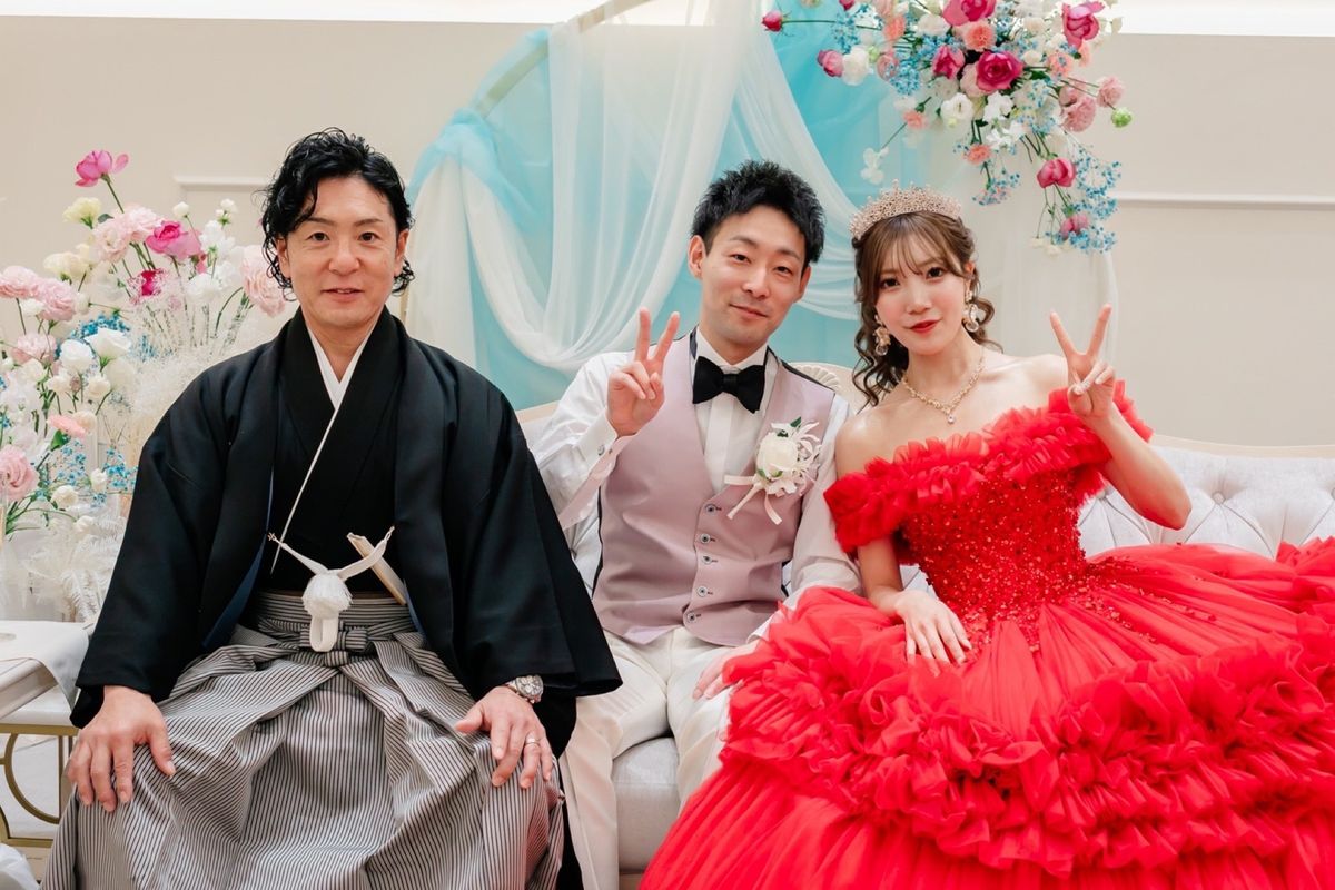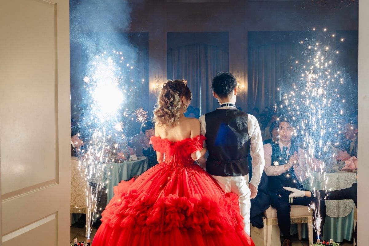 ご新婦はウェディングドレスのほかに2着のカラードレスを着用になり、会場をより華やかに演出されました。2着目のドレスは真っ赤なドレス・3着目は、ピンクのふんわりとしたボリューム感のあるドレスで、お花のようなデザインがとても魅力的でした。