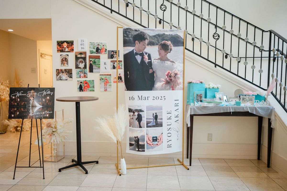 ティファニーブルーの世界観が広がる空間で、理想の一日を叶えたおふたり。会場コーディネートやドレスもテーマに合わせてイメージを統一。さらに、ゲストの印象に残る華やかな演出もたくさん取り入れた結婚式となりました。