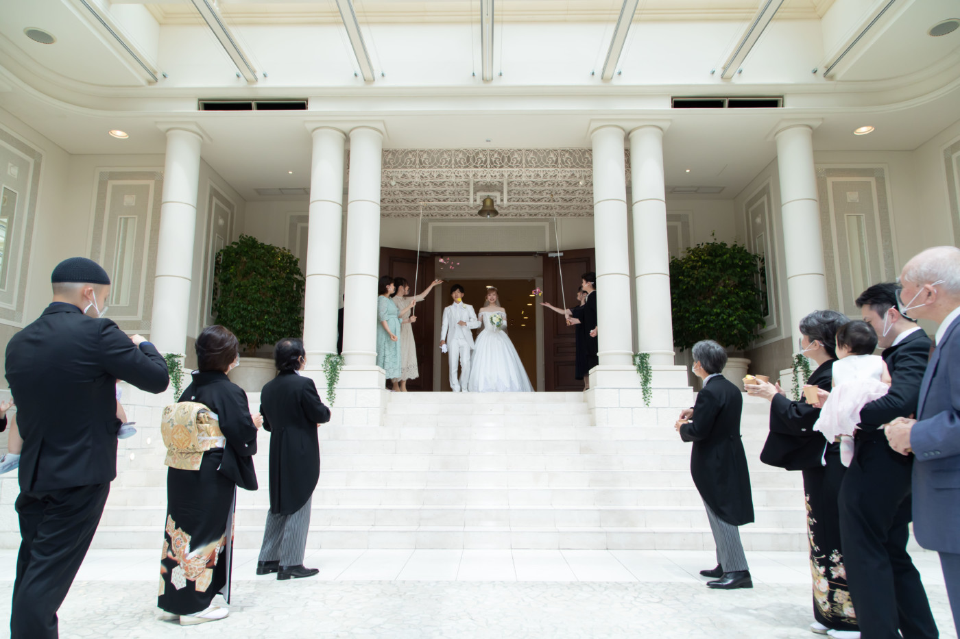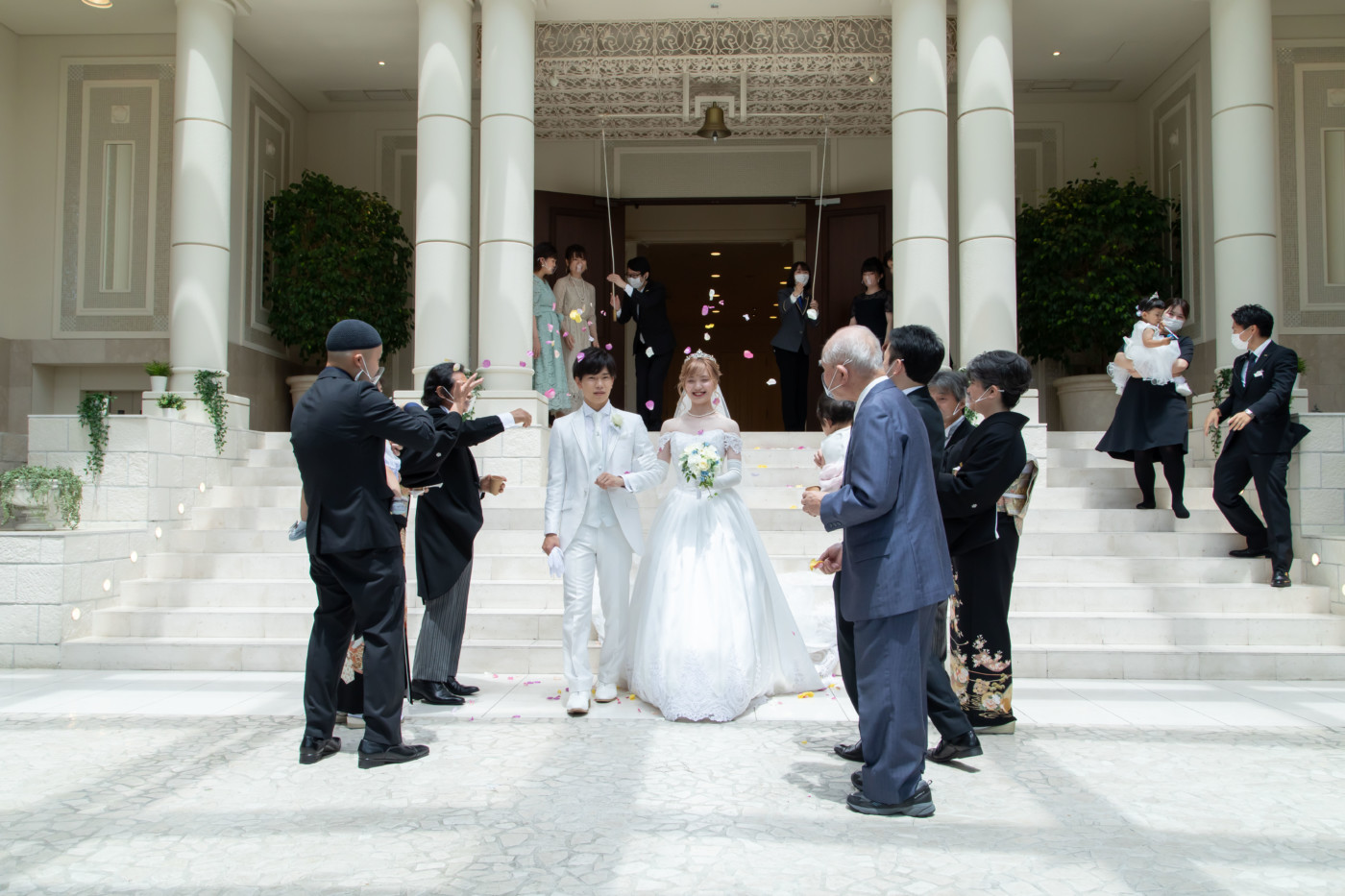 挙式の後はフラワーシャワーでおふたりをお迎えしました