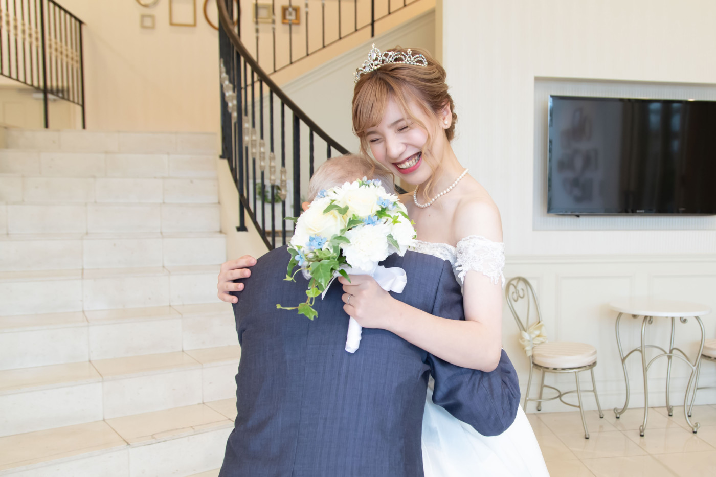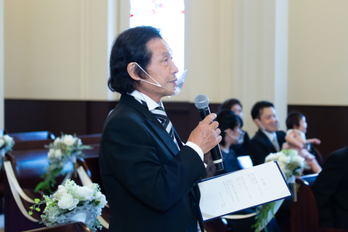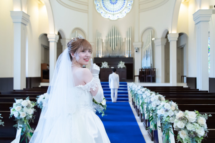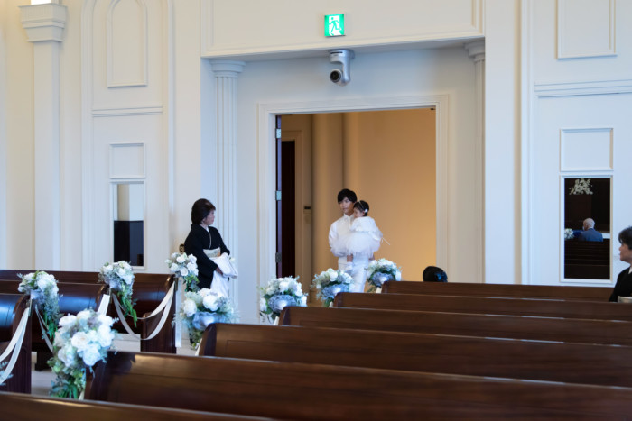 今までの人生を振り返り、一緒に歩んできたお父様に バージンロードを一緒に歩いていただきました