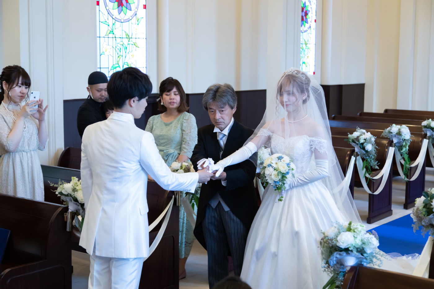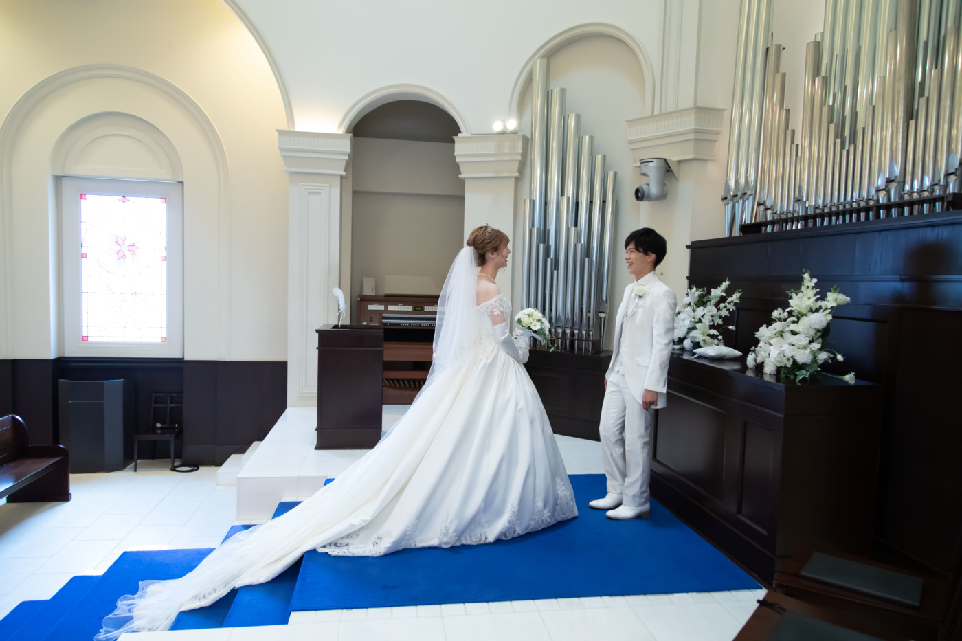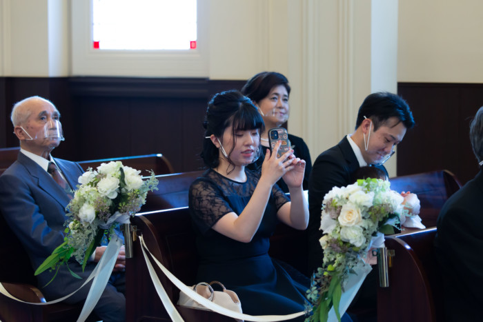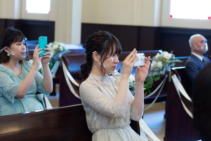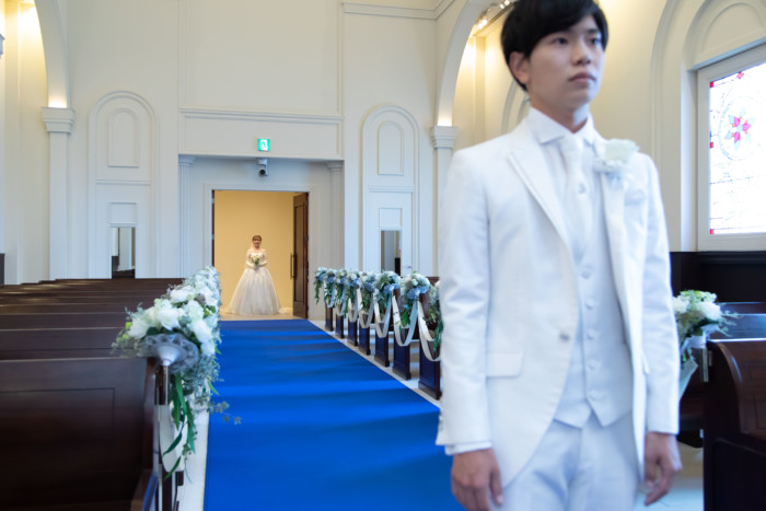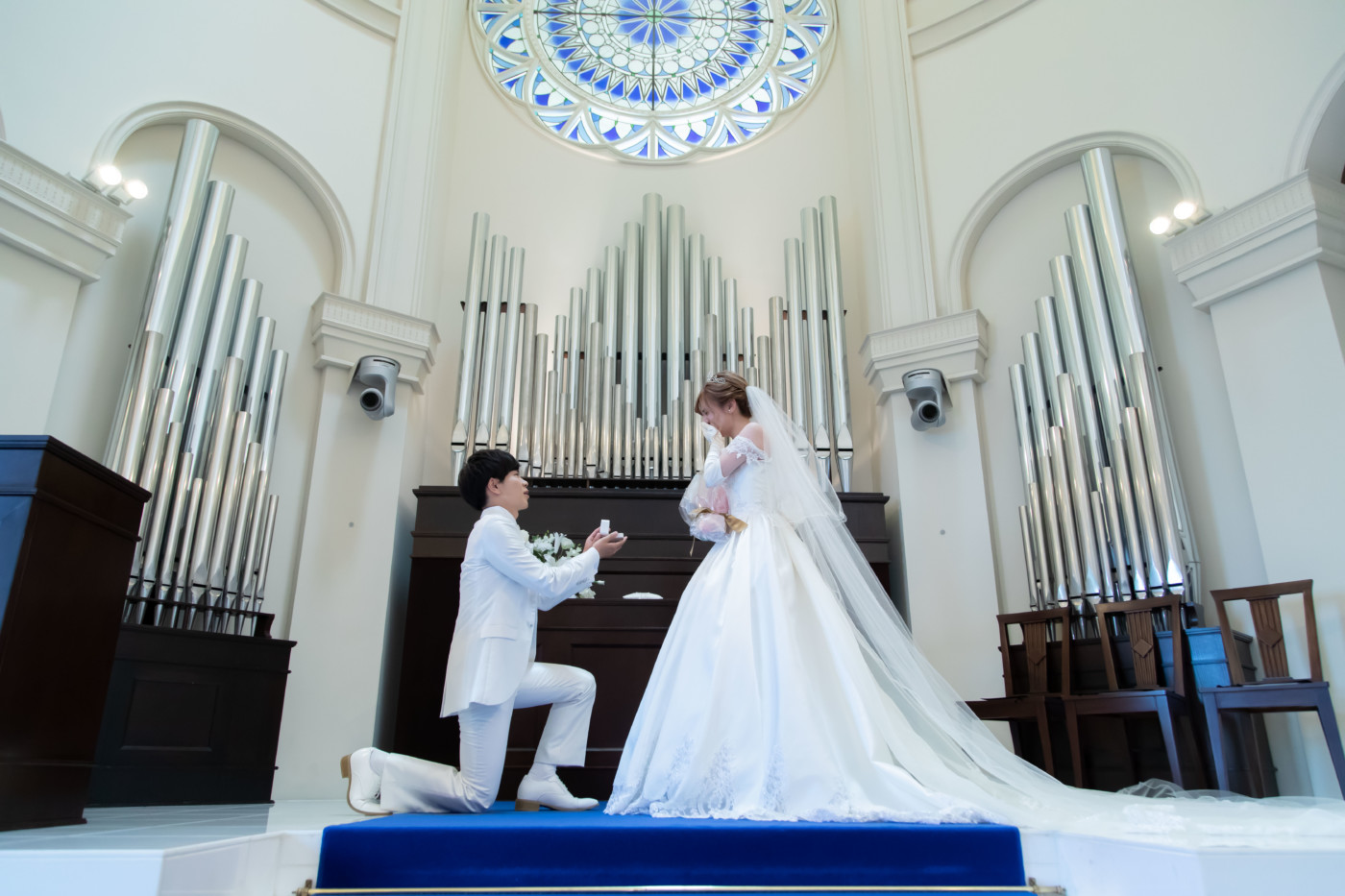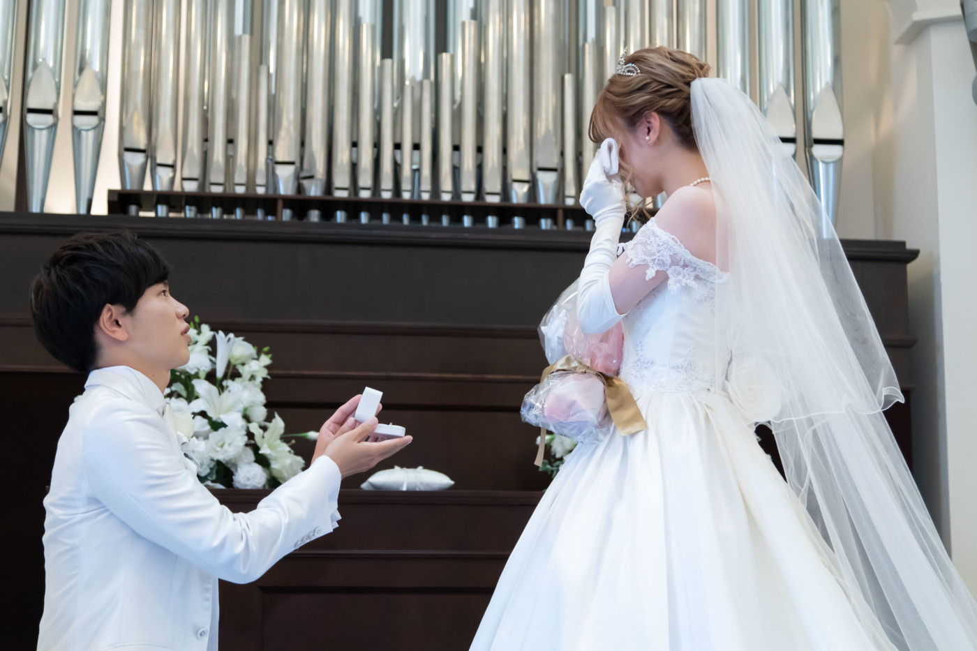 チャペルでのファーストミート、 ご新婦へエンゲージリングをサプライズプレゼントされていました