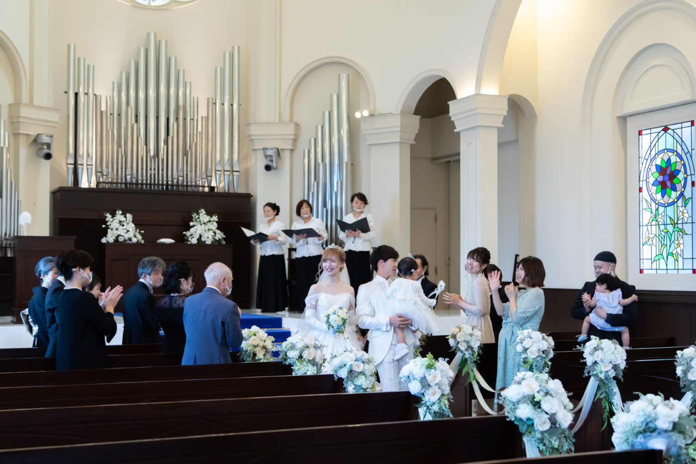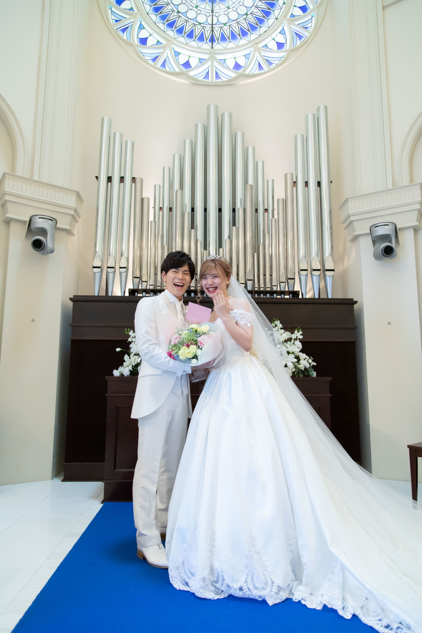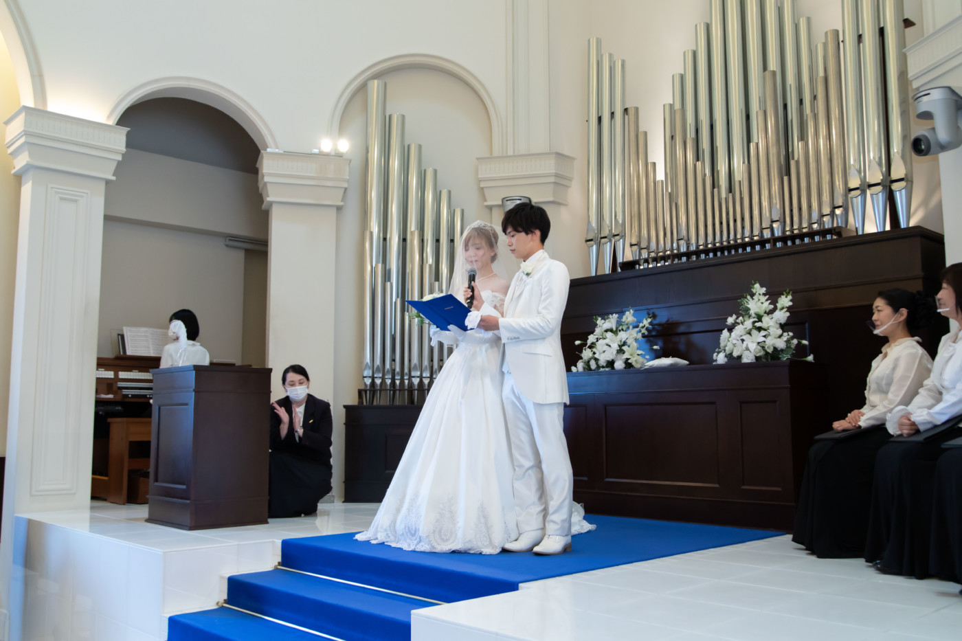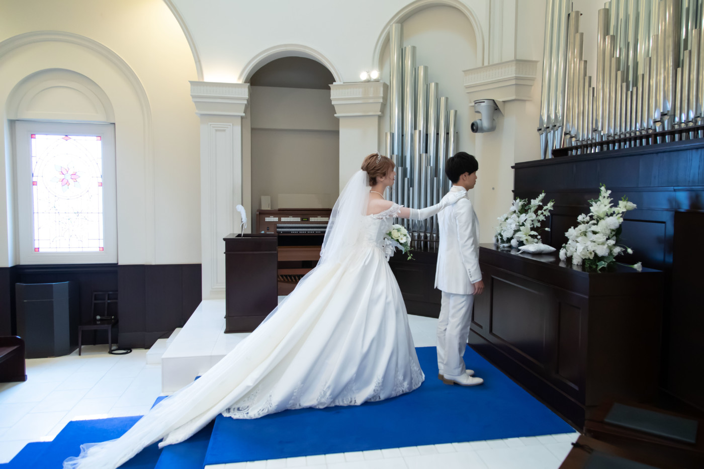 チャペルでのファーストミート、 ご新婦へエンゲージリングをサプライズプレゼントされていました