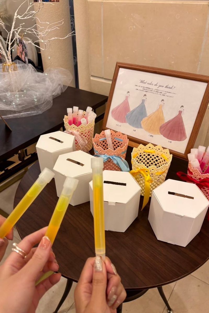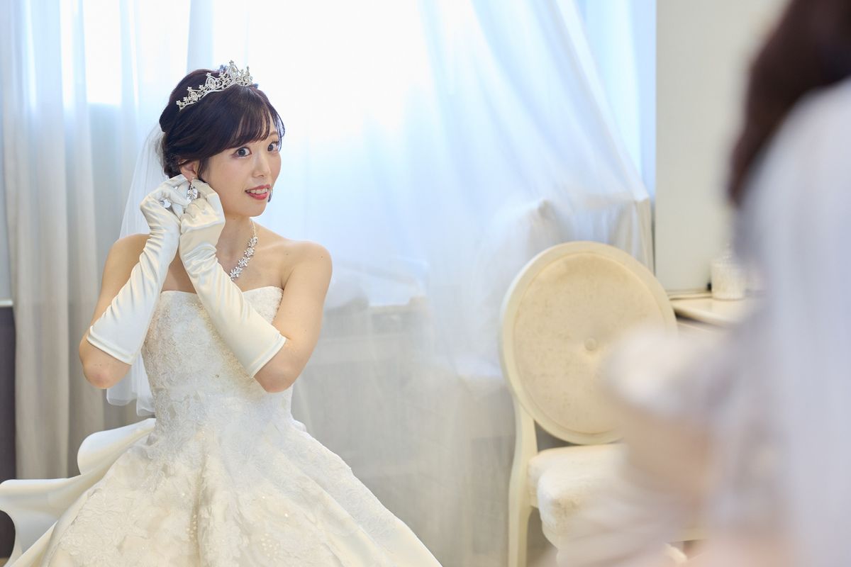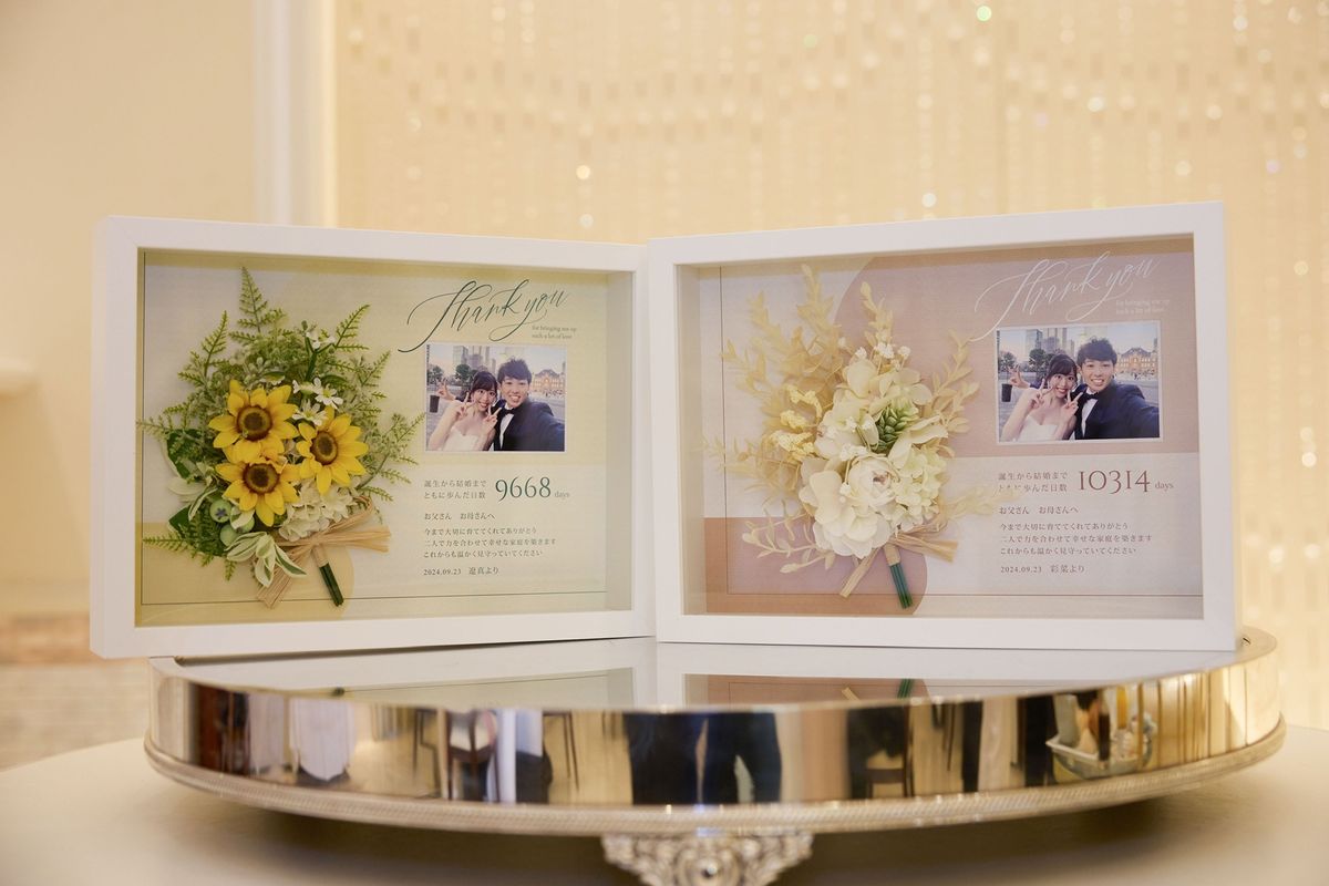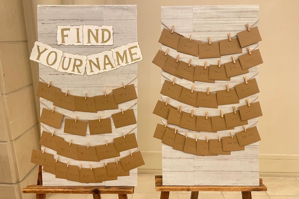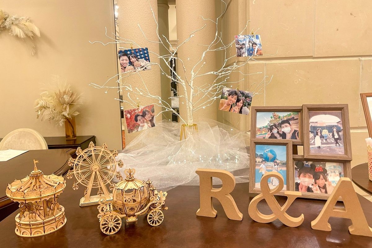 ご自分達で準備できるものは出来るだけ手作りをしたおふたり。ウェルカムスペースに写真を飾るほか、ウェルカムボード、ウォールレター、ドレス色当てに使うグッズなど様々なアイテムが用意されていました。一緒にDIYをする時間は、とても楽しかったそうです。ゲストに関することにこだわる一方、ご自分達のアクセサリーやドレスのインナー、ブーケなどはネットで賢く購入するなどバランス良く準備に取り組まれていました。