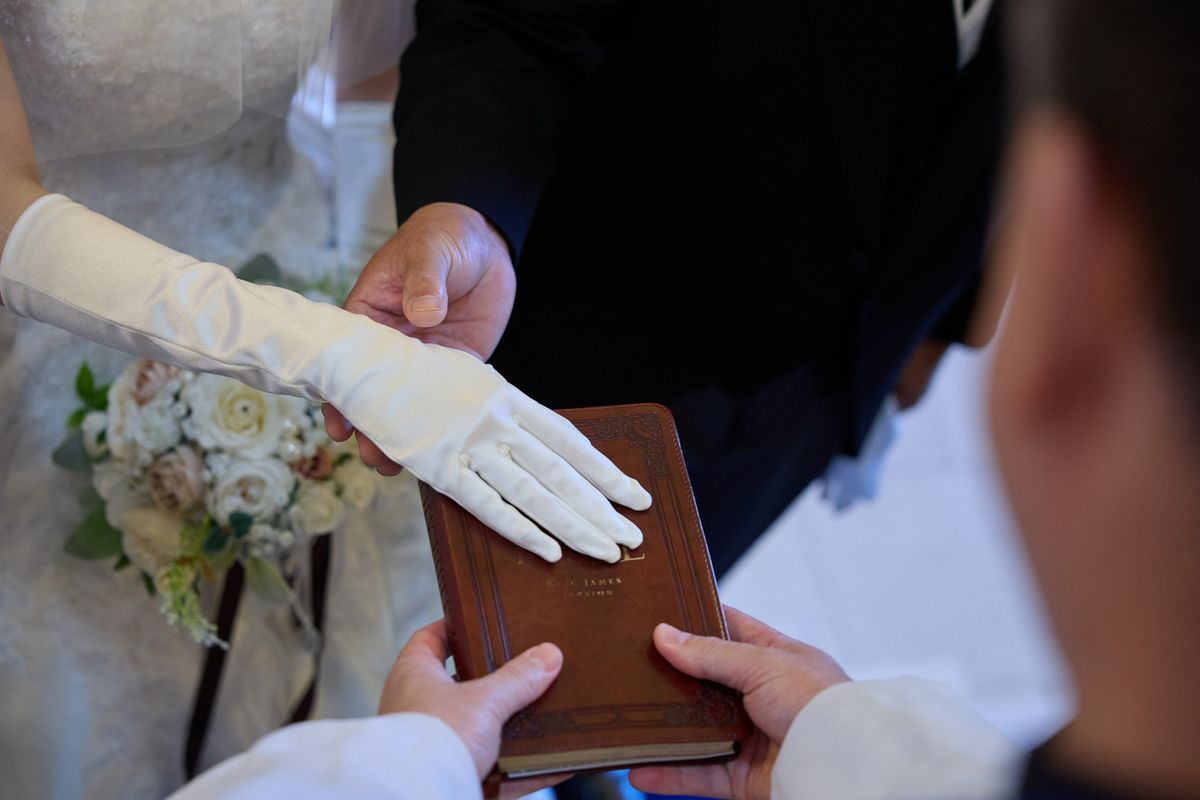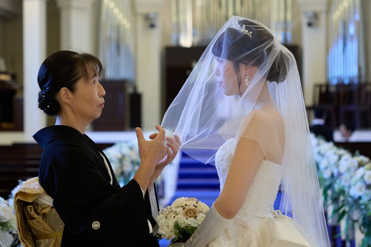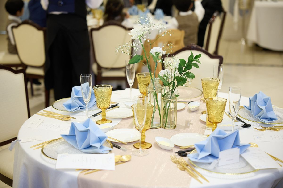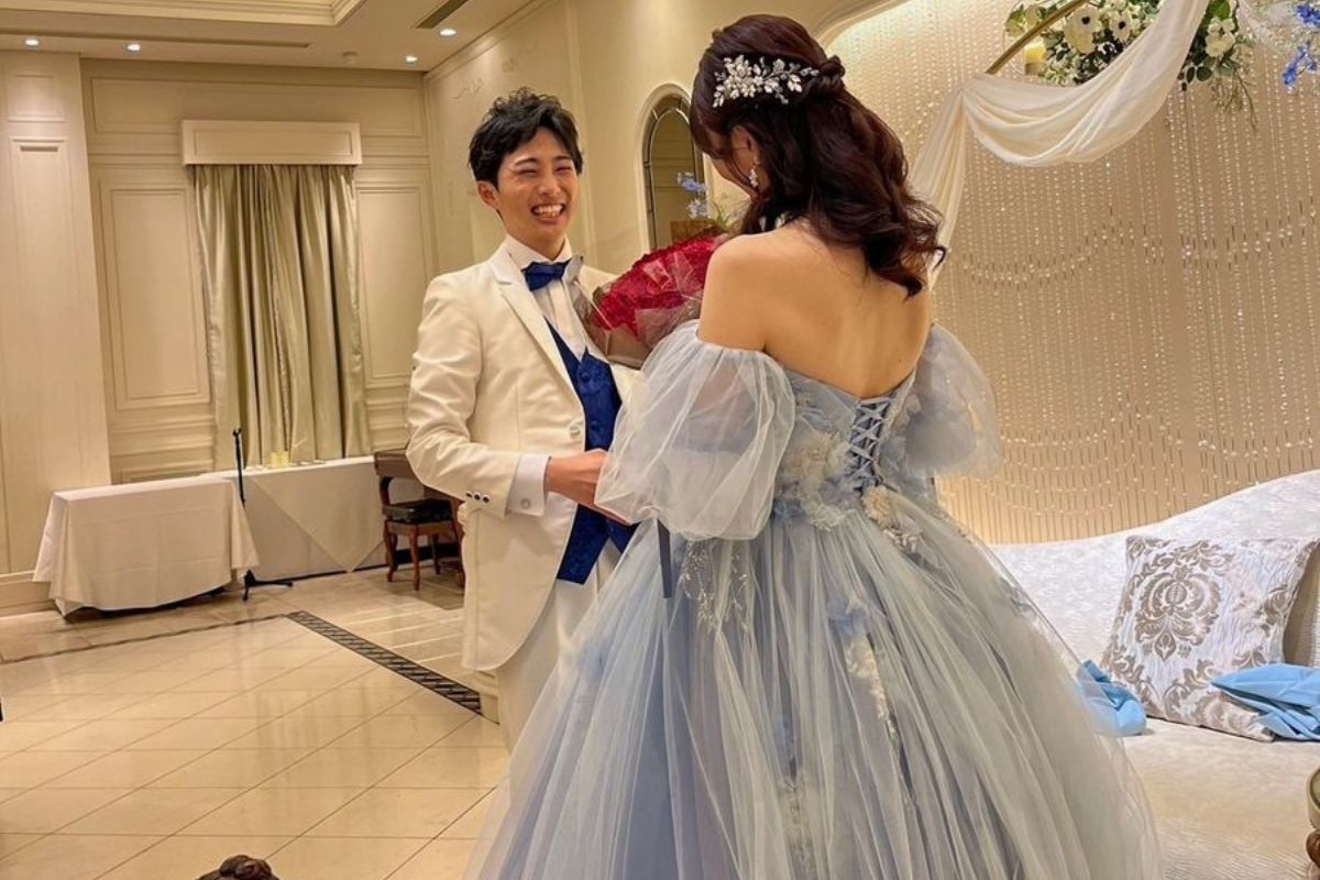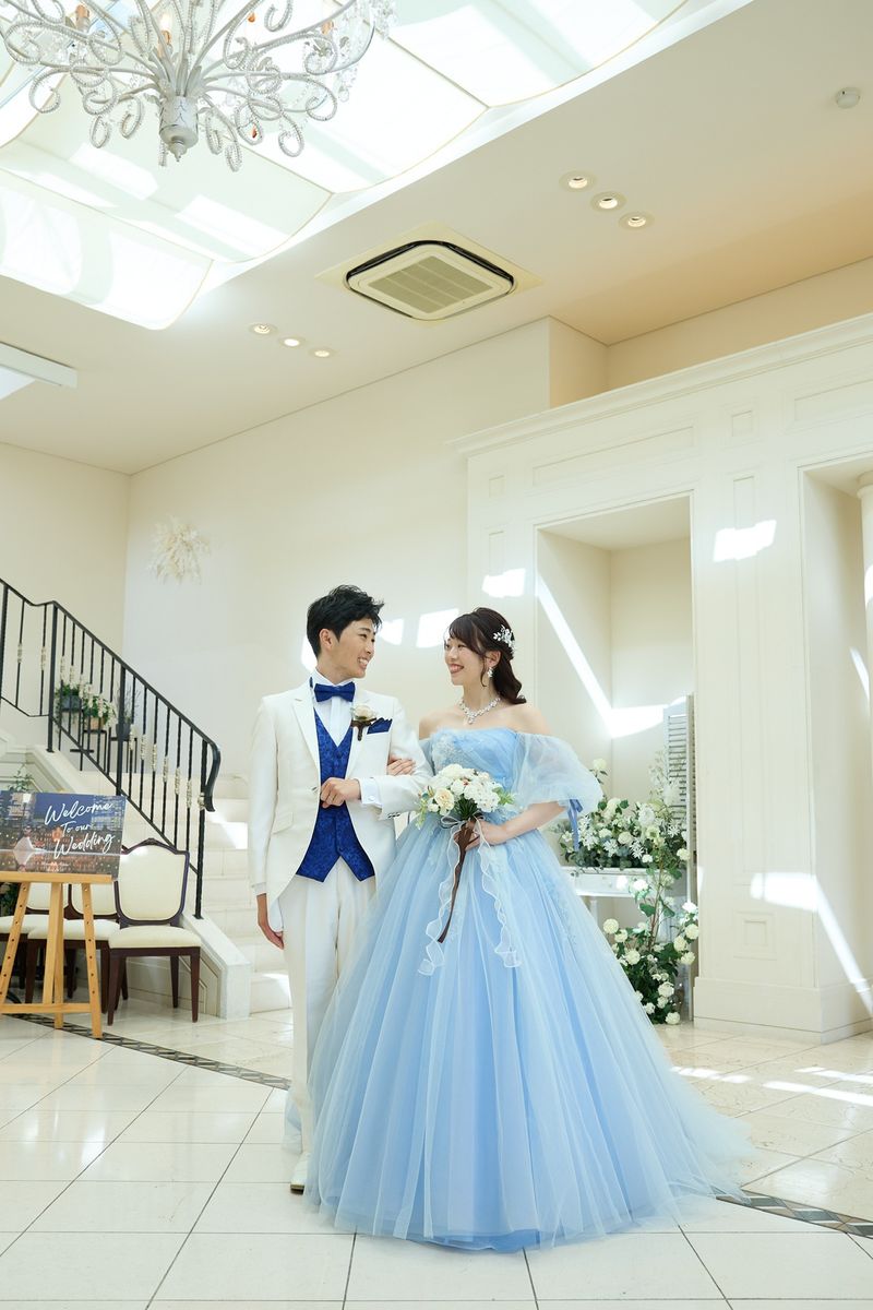 新婦様は当式場のチャペルを見た瞬間、青いバージンロードに強く惹かれ、胸が高鳴ったそうです。当日は純白のウェディングドレスが美しく映え、感動的なシーンが広がりました。また、チャペル内にはパイプオルガンの荘厳な音色と聖歌隊の歌声が響き渡り、より格式ある雰囲気に。入場前にチャペルムービーを流した際は会場が一気に盛り上がるとともに、ムービーを見つめるご新婦の御父様の表情がとても印象的でした。