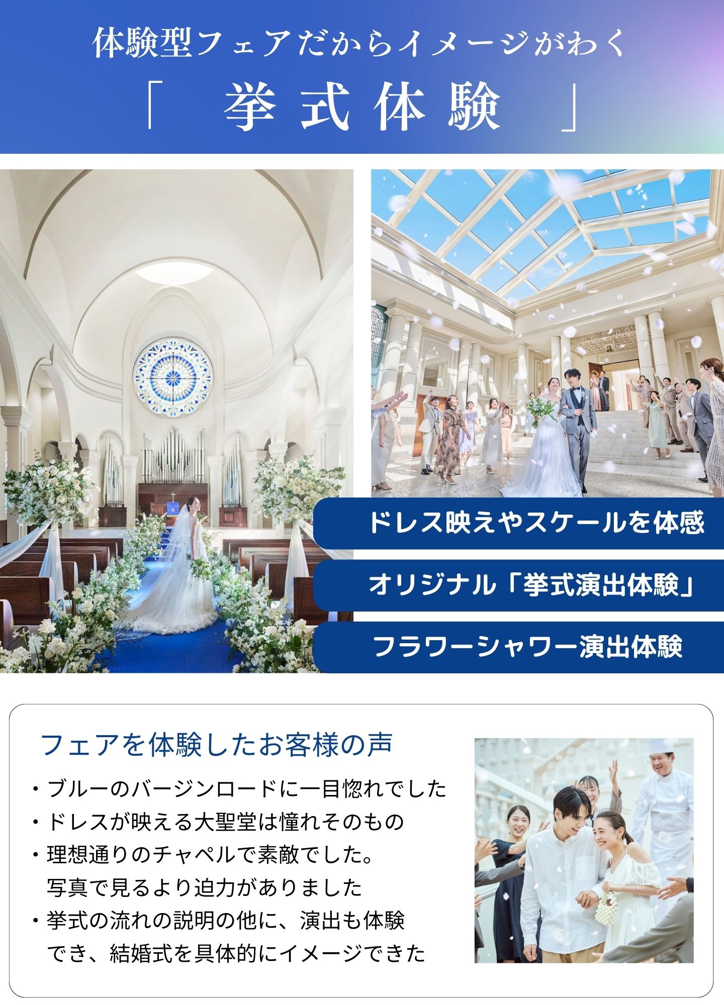 詳しい詳細や実際のチャペル・会場をご覧になることで、おふたりのご希望が明確になる方が多いので、迷われている場合はぜひフェアにご参加くださいませ。
