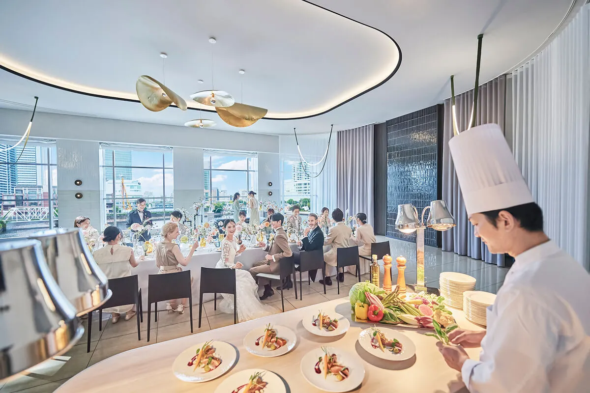 おふたりの大切な人たちと、心通う時間を過ごしてほしい。そんな想いから、少人数ウェディング専用の会場が誕生しました。ゆったりとした雰囲気の中で語らいを楽しみながら、和フレンチなど美食のフルコースで心を込めたおもてなしをお届けします。