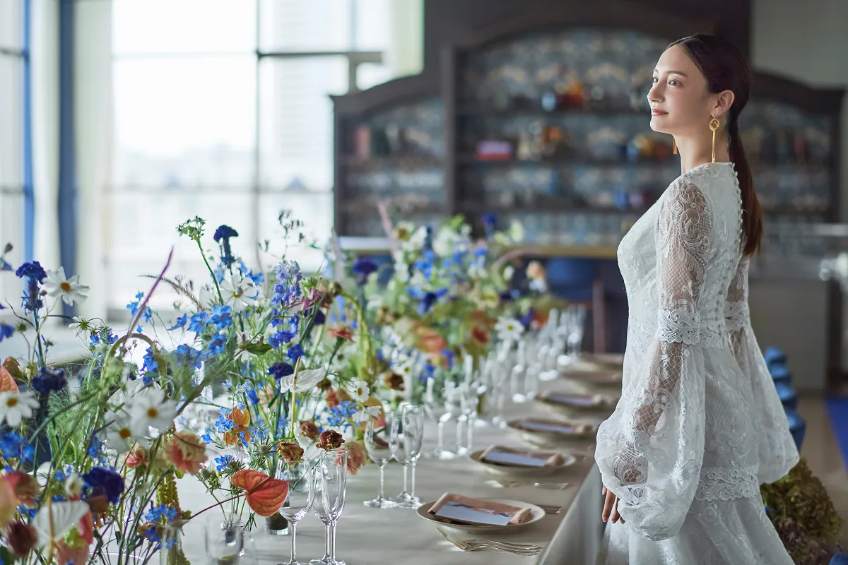 最上階の大きな窓から広がるのは、みなとみらいの街並みと海が織りなす絶景。時間と共に変わる風景が、特別な一日をより美しく彩ります。