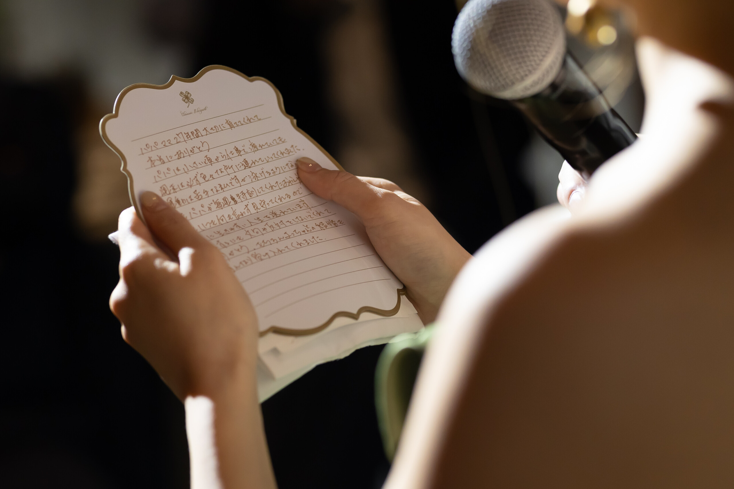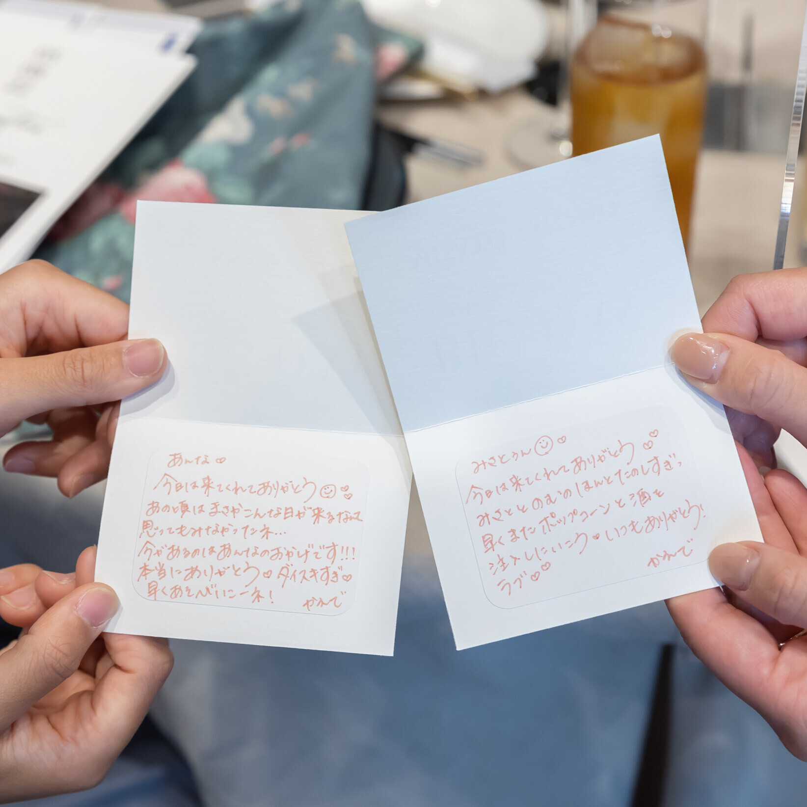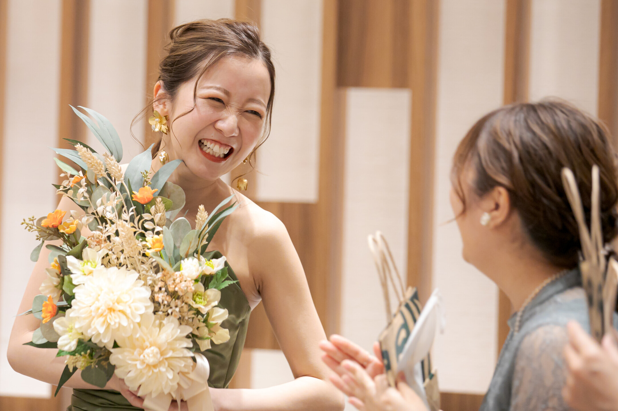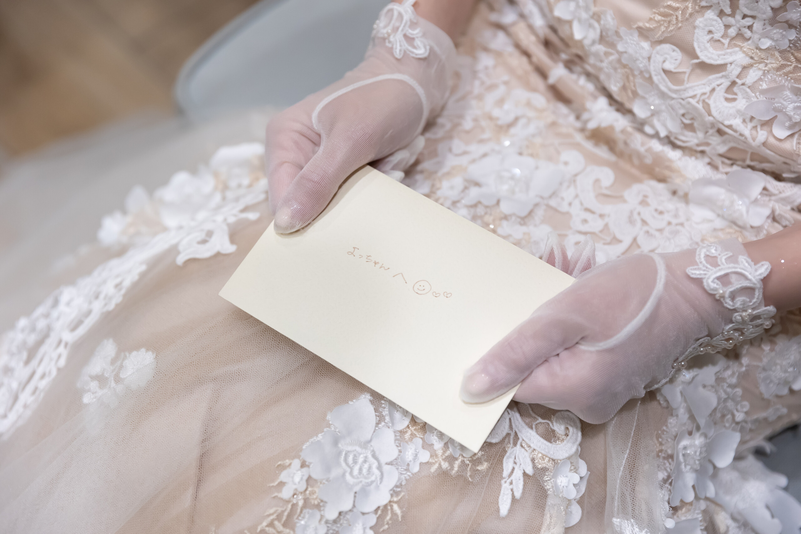 大切な家族や友人への感謝とお写真を大切にしたご結婚式。 ご結婚式当日、ご新郎へお手紙をお渡しになったご新婦。 ゲスト一人ひとりにもお手紙をお席にご準備し、これまでの感謝を届けました。 おふたりそれぞれのご友人様もおふたりに向けお手紙を朗読され、 素敵な言葉が飛び交う祝福に包まれた温かい披露宴パーティとなりました。 ふたりだけでの写真も多く残る1日となり、 これだけゆったり1日を過ごせるご結婚式はアニヴェルセルならではです。