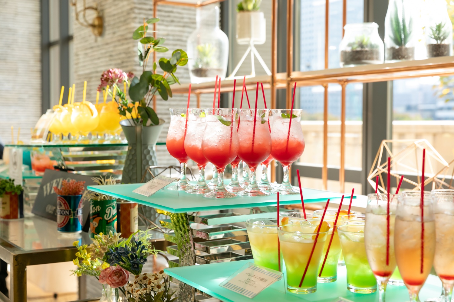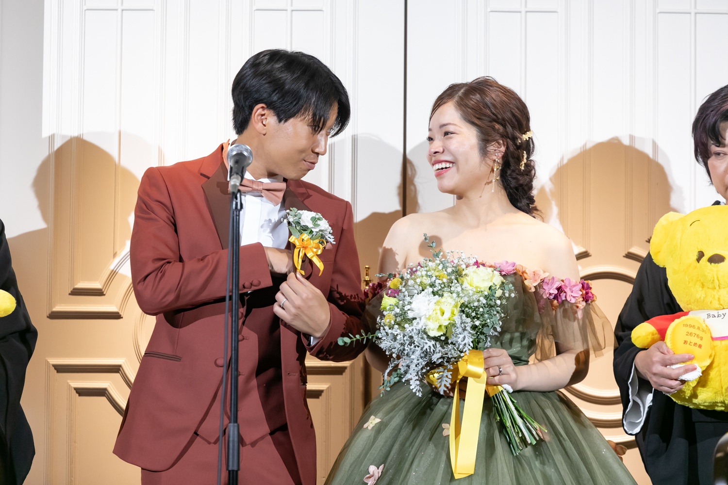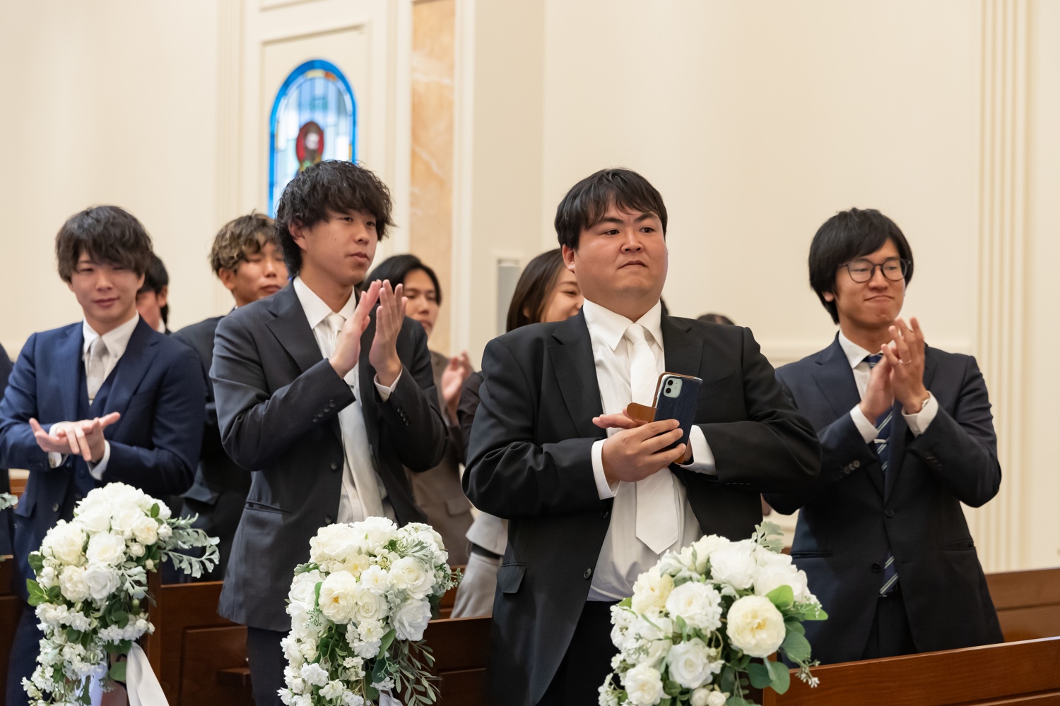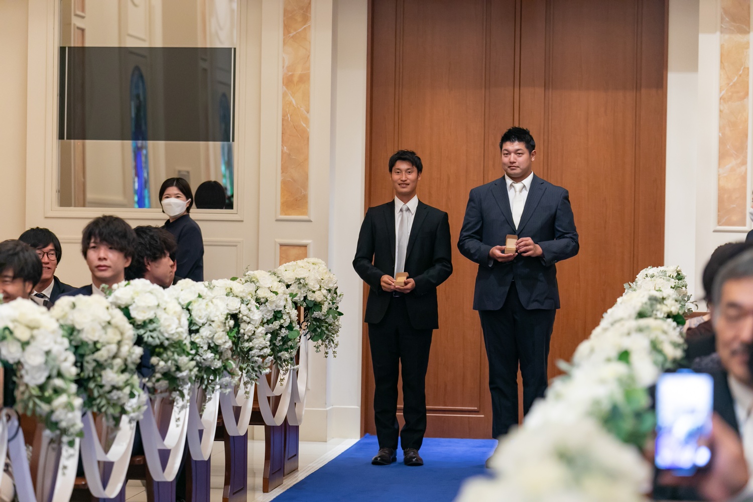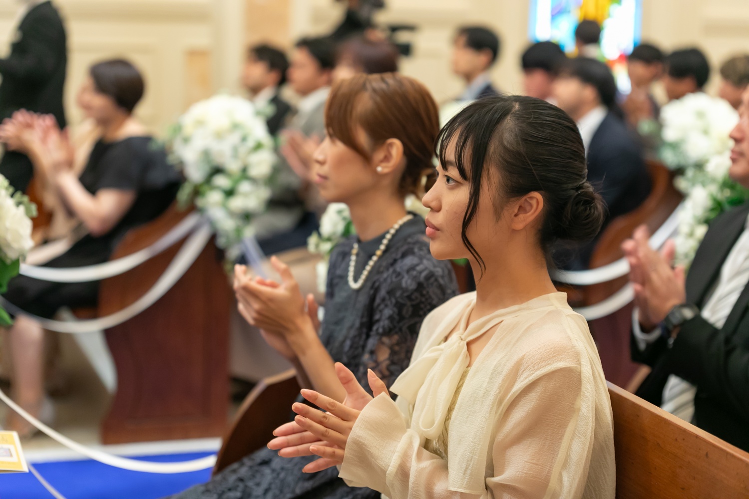ご新婦こだわりのビタミンカラーのお花×ブルーのテーブルコーデやカラフルなドレスがとってもキュートな結婚式。 ゲストも一緒に楽しめるように指輪のお届けサプライズやリボンセレモニーなどを取り入れてご準備され、当日はたくさんの笑顔がはじけるHappyな1日になりました。