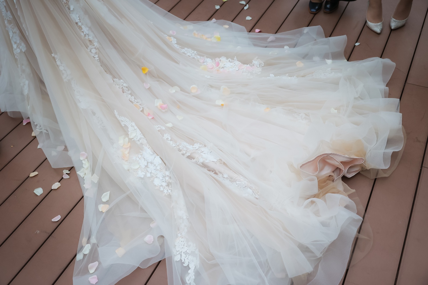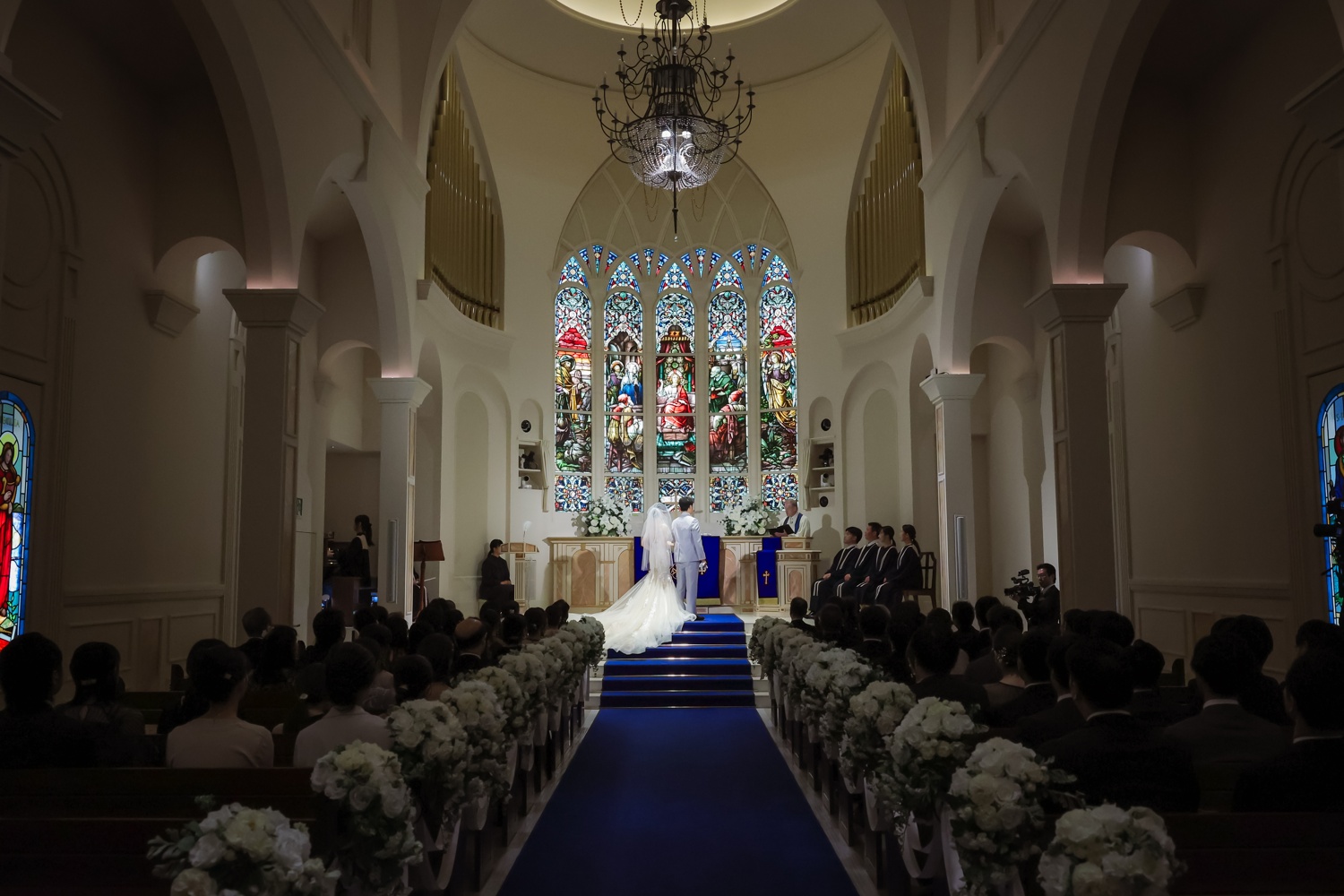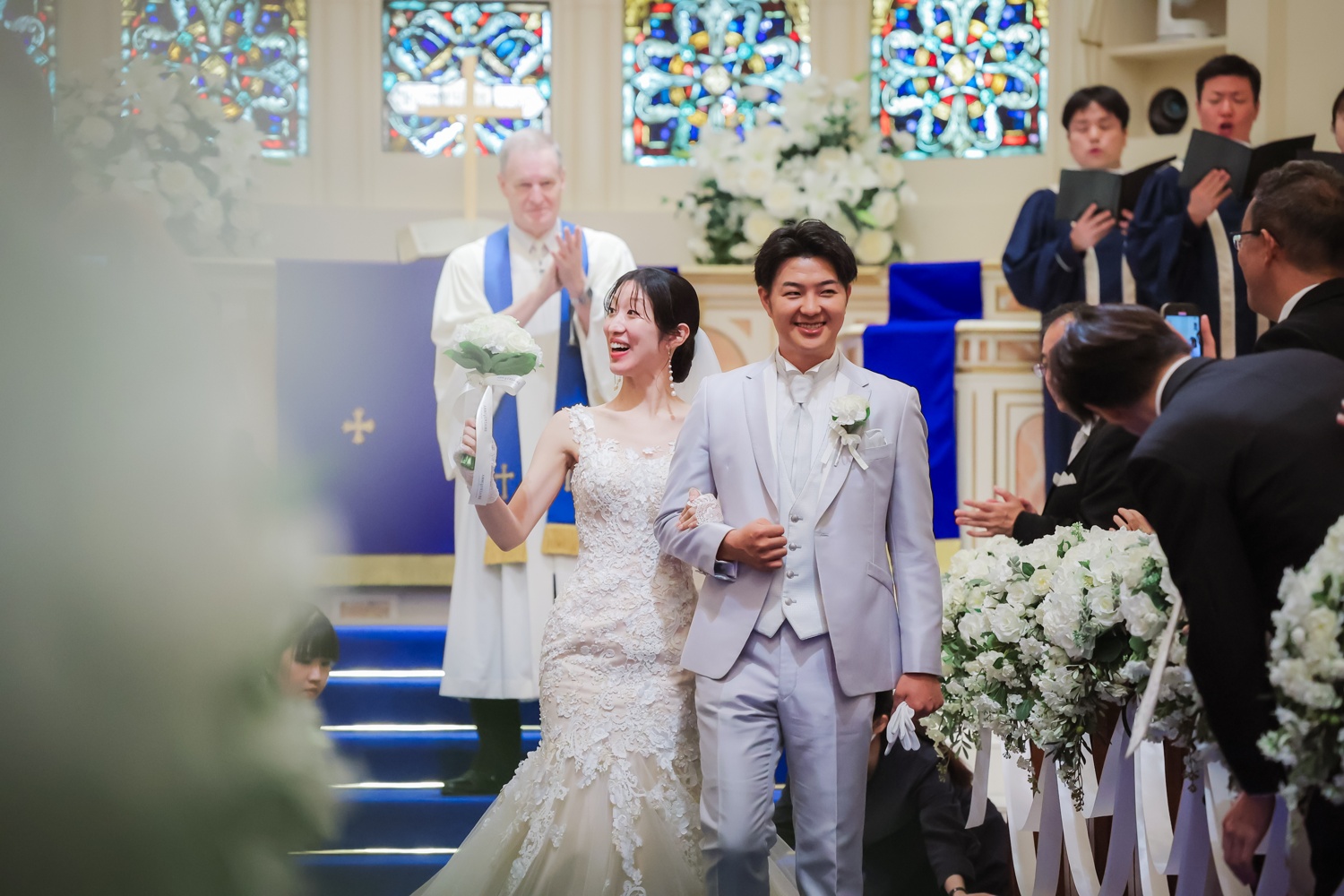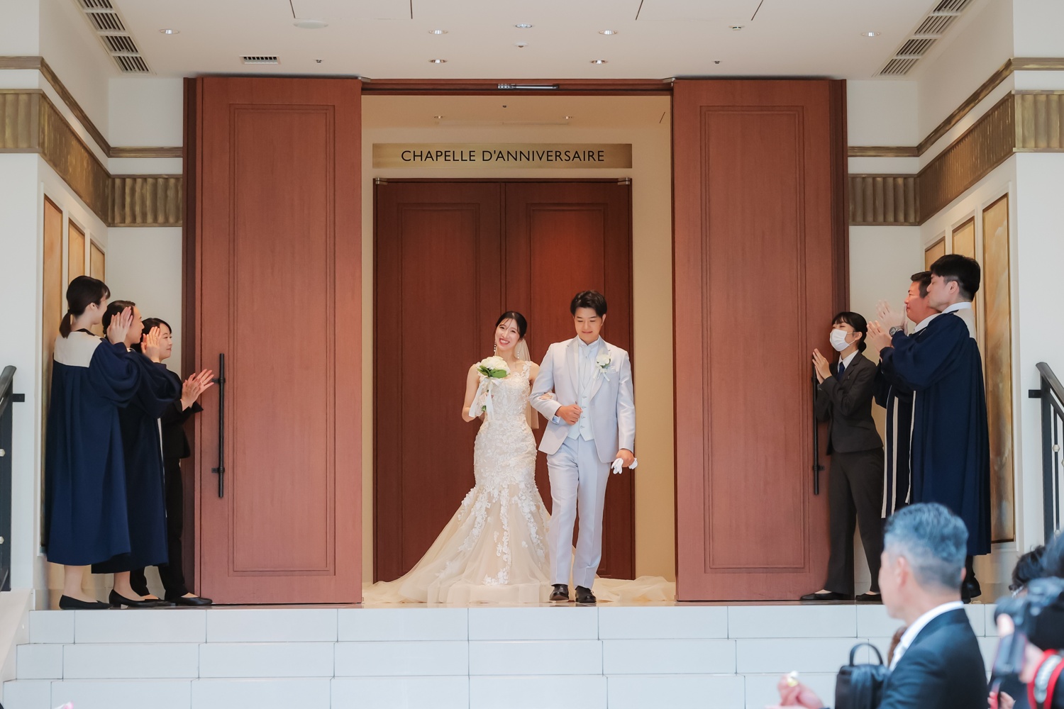 ご新郎親御様からあたたかい想いが込められた「ジャケットセレモニー」ご新婦様の自らの想いを綴った「チャペルムービー」など、おふたりの感謝がたくさん感じられるセレモニーに皆様も思わず感動。さらに、ゲストの皆様がリングを運ぶ「サプライズリング」の演出で会場全体が一体となり、あたたかい挙式となりました。