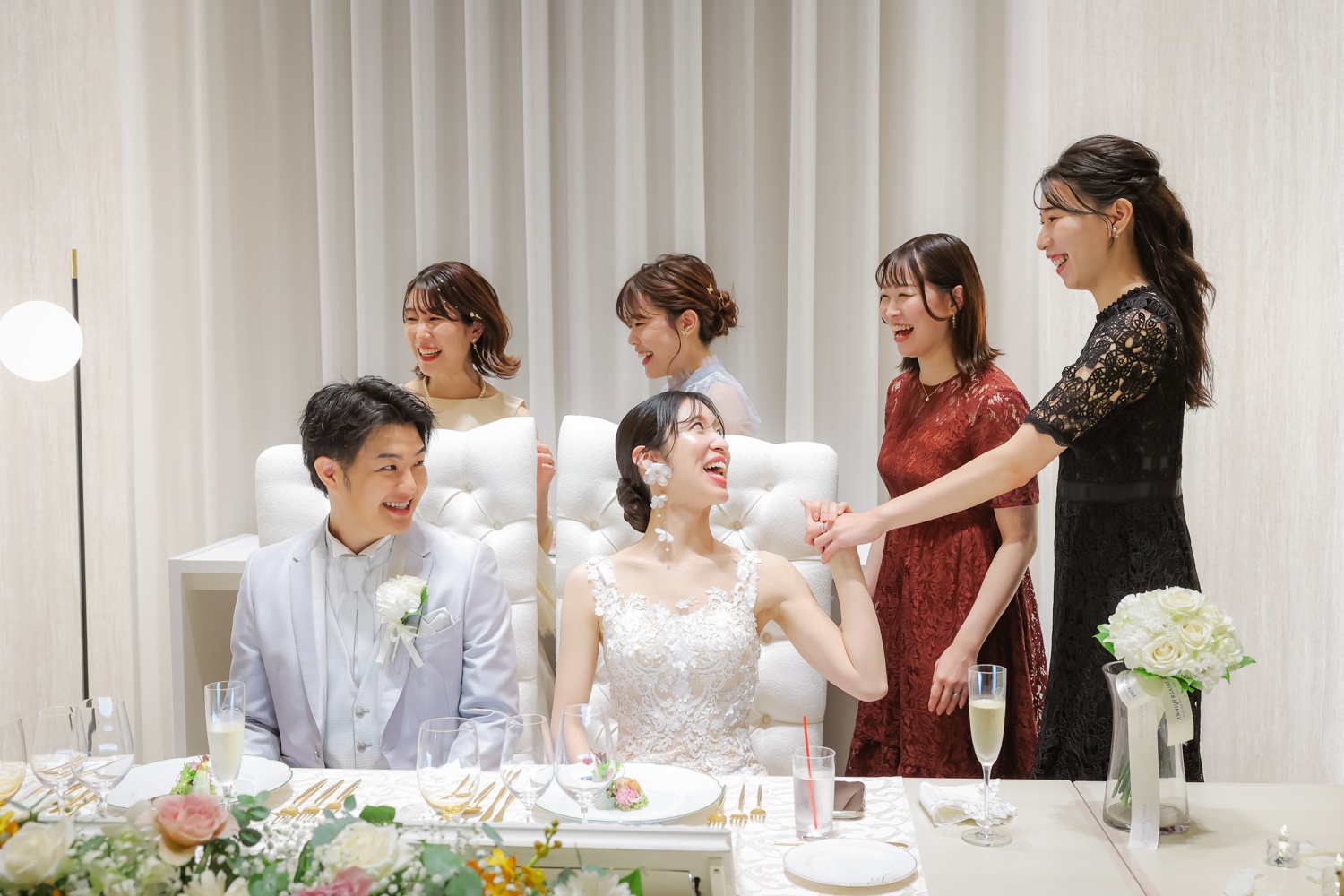 「自分たちよりもゲストのみんなに楽しんでほしい」そんな想いでたくさん準備をしてくださったおふたり。こだわりのアイテムと、会場が一体となって楽しめる進行でおふたりとゲストの笑顔がいっぱいの幸せな一日となりました。