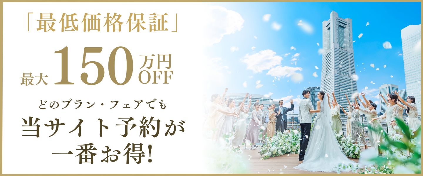 公式HPからフェア予約をすると、他式場サイトやカウンターで発生する掲載料や紹介料が発生しないので、その分割安なプラン価格でご案内でき、公式HPからのご予約を最安値(ベストレート)とさせていただいております。