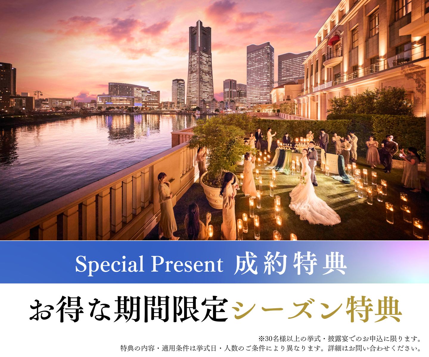 アニヴェルセルでは、30名様以上でのご結婚式の場合、ご婚礼の時期などによりお得なプランをご用意しております。