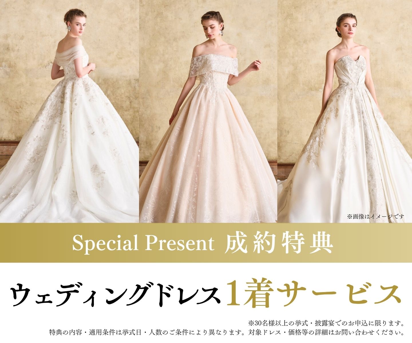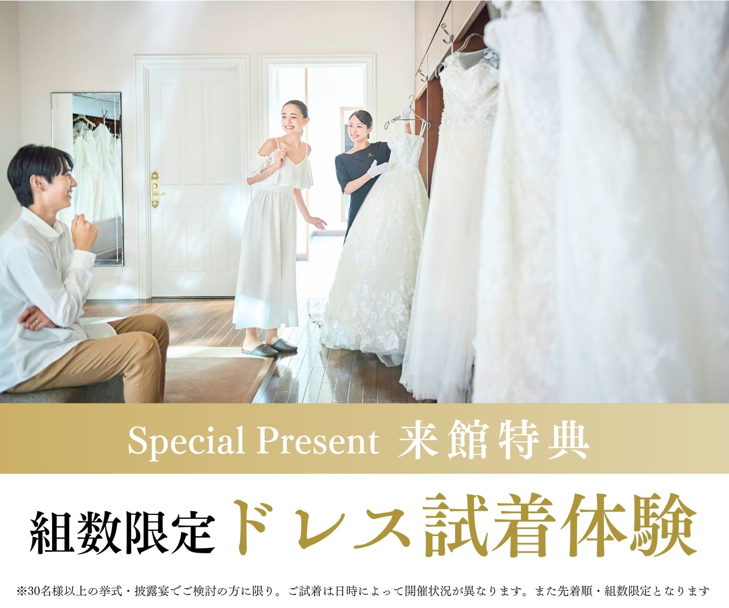 ※ドレス試着ご希望の場合は、ご予約時にお申し出ください。先着順・組数限定となります。