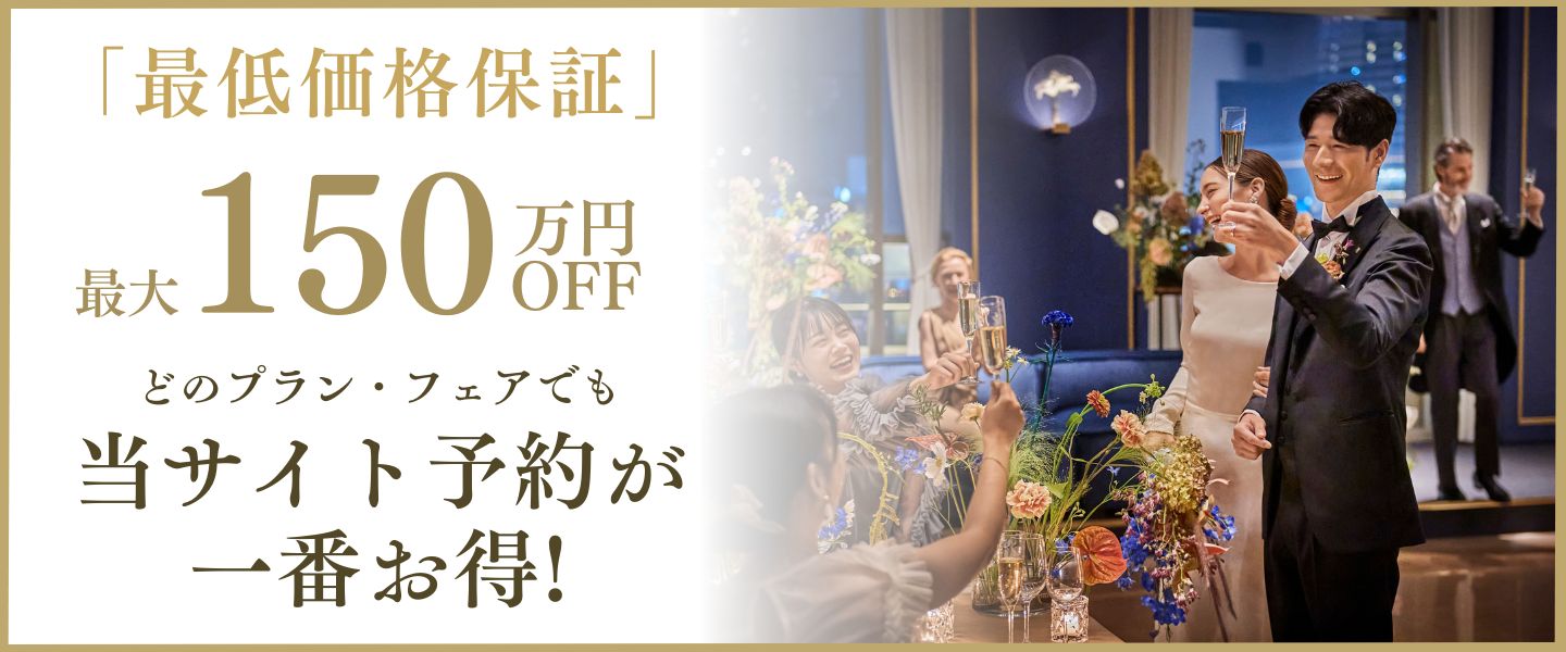 公式HPからフェア予約をすると、他式場サイトやカウンターで発生する掲載料や紹介料が発生しないので、その分割安なプラン価格でご案内でき、公式HPからのご予約を最安値(ベストレート)とさせていただいております。