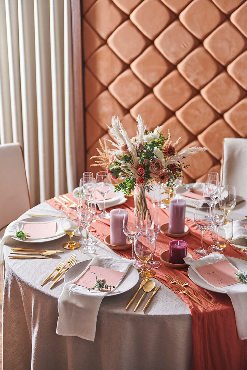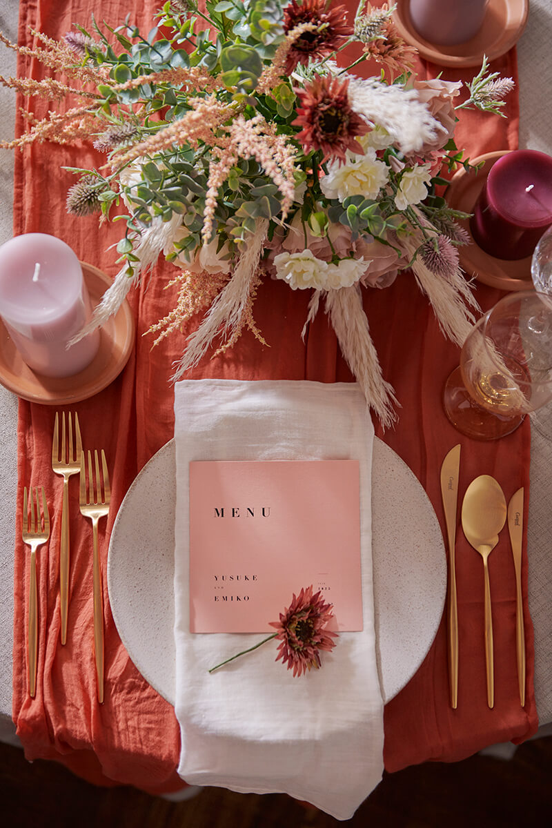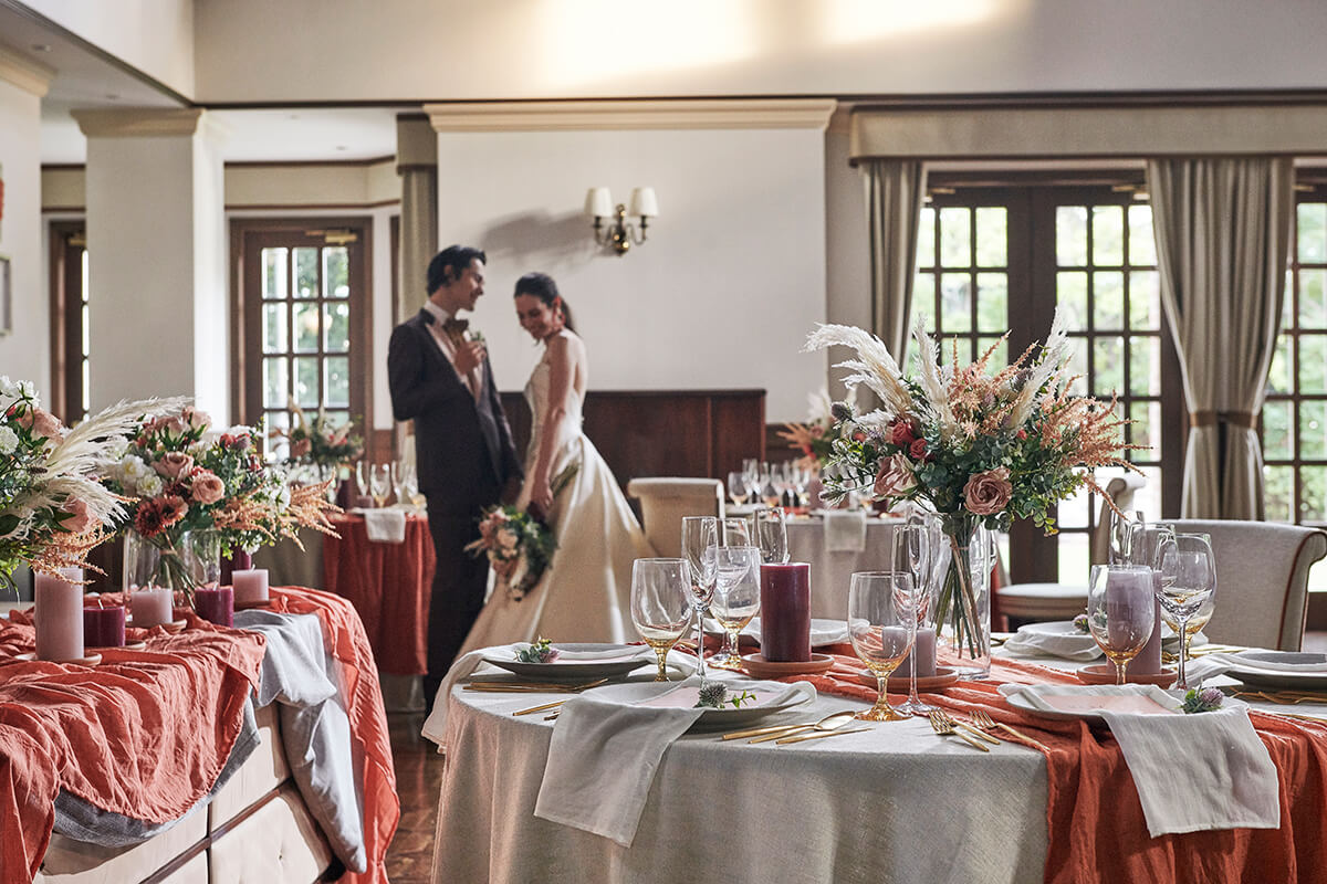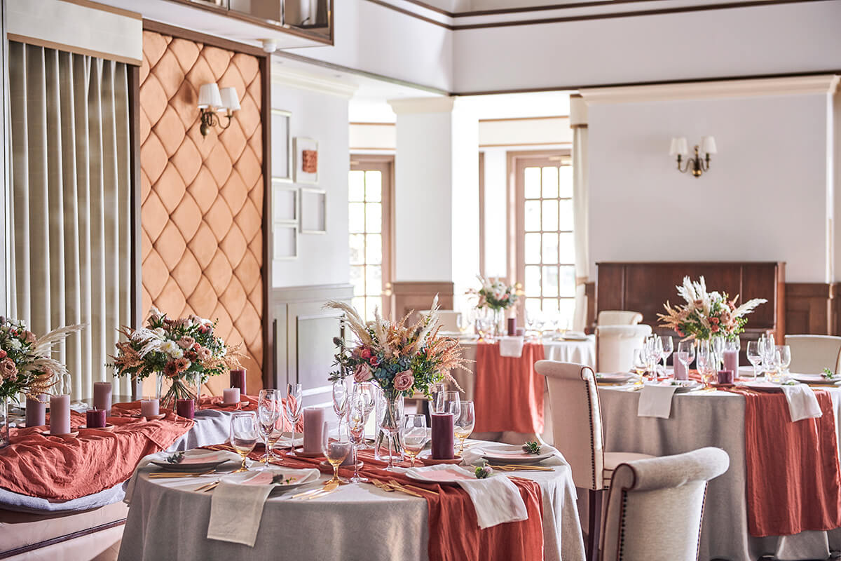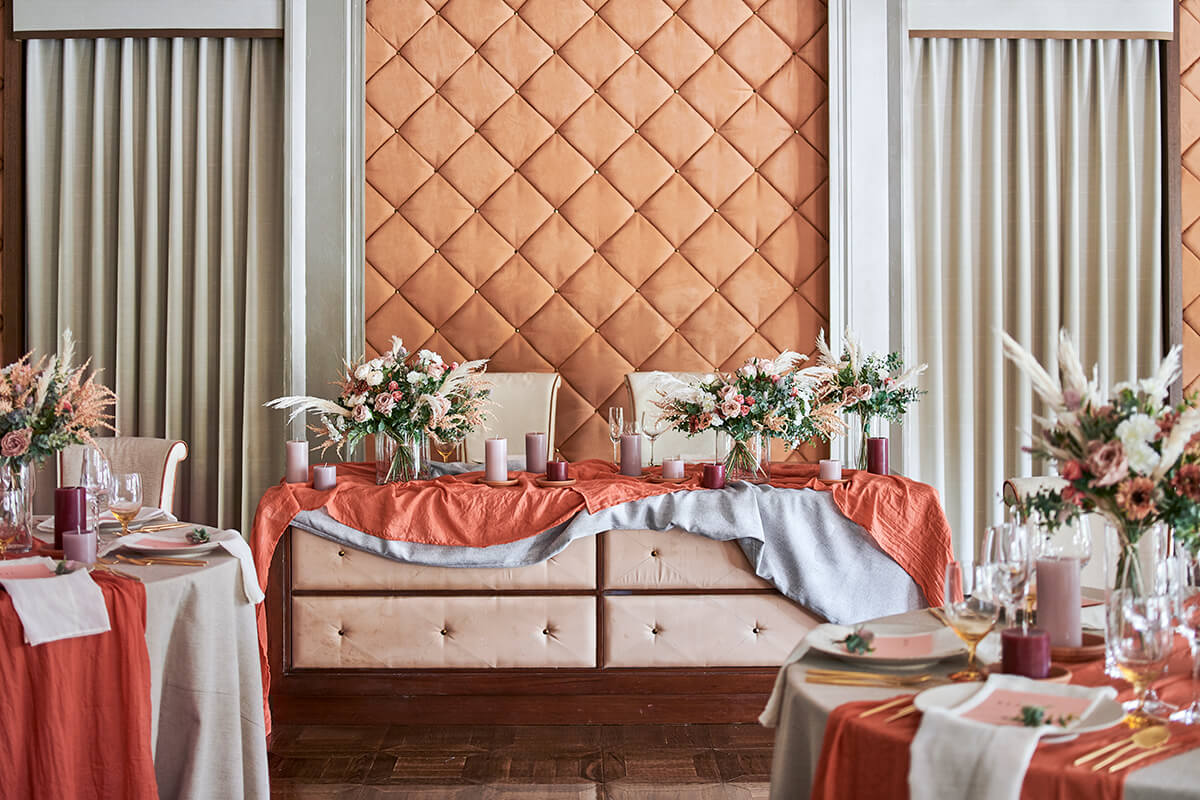 「ビブリオ」は優しいメロウな色調のスタイリング。 「本」を意味するラテン語で、これから始まるおふたりの物語を紡ぐ、祝福の空間を演出します。