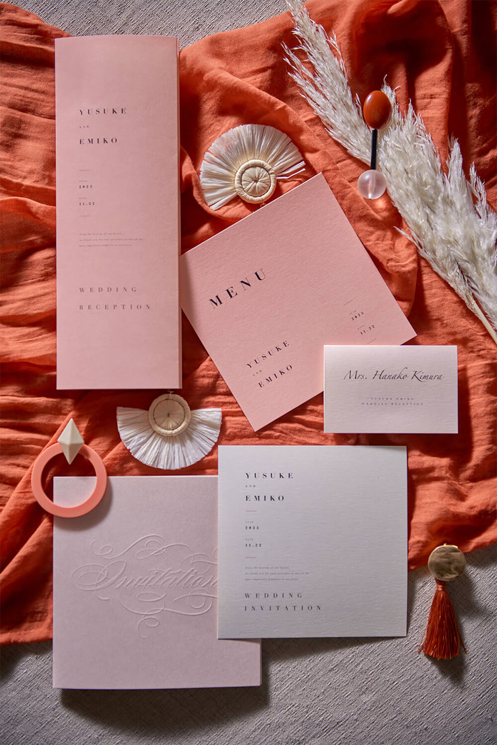 「レス・イズ・モア」は引き算のデザインでファッショナブルな 高級感を演出する秋のコレクション。飾りすぎない洗練された 印象が、おふたりを引き立てます。