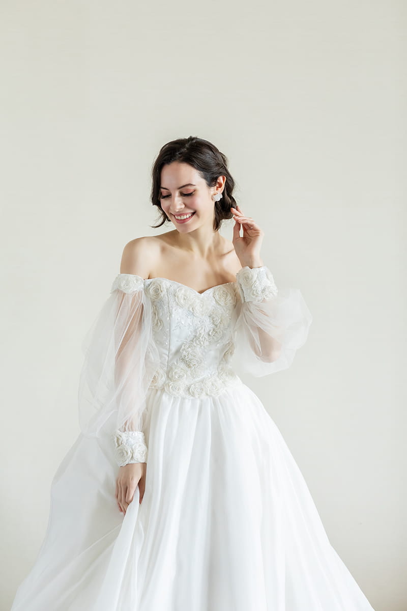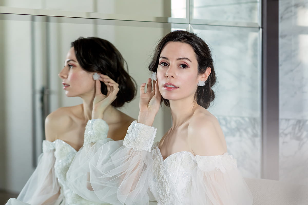 「カメリア」の花言葉“至上の愛らしさ”をイメージした冬の コレクション。シックで上品な白を基調に、可憐な華やかさで おふたりをやさしく演出します。