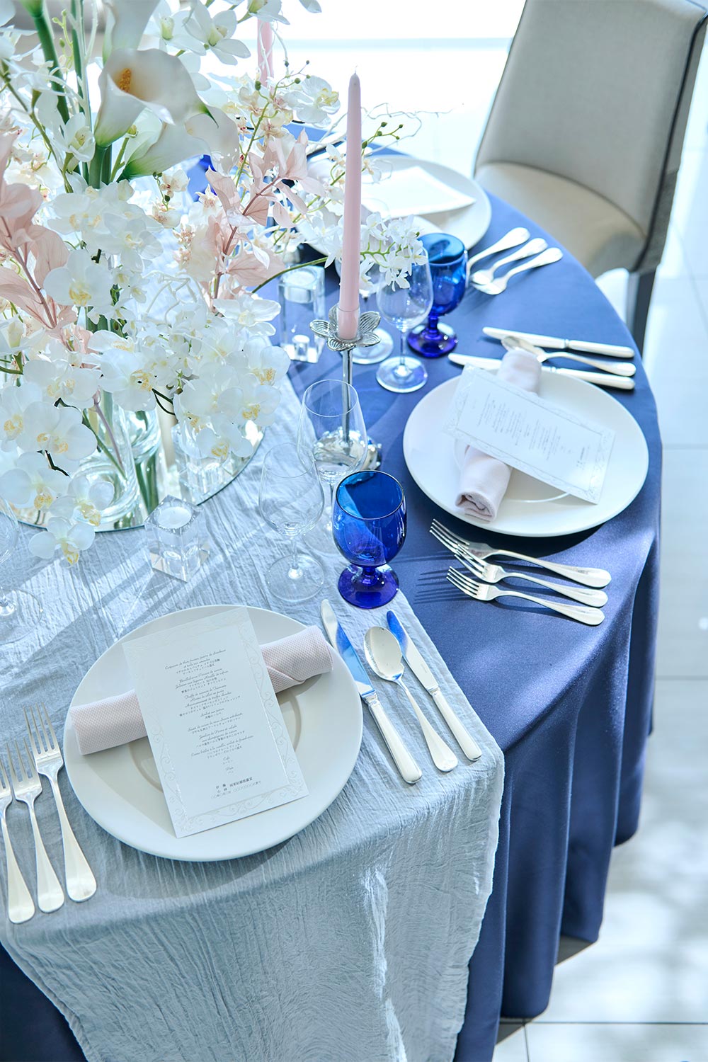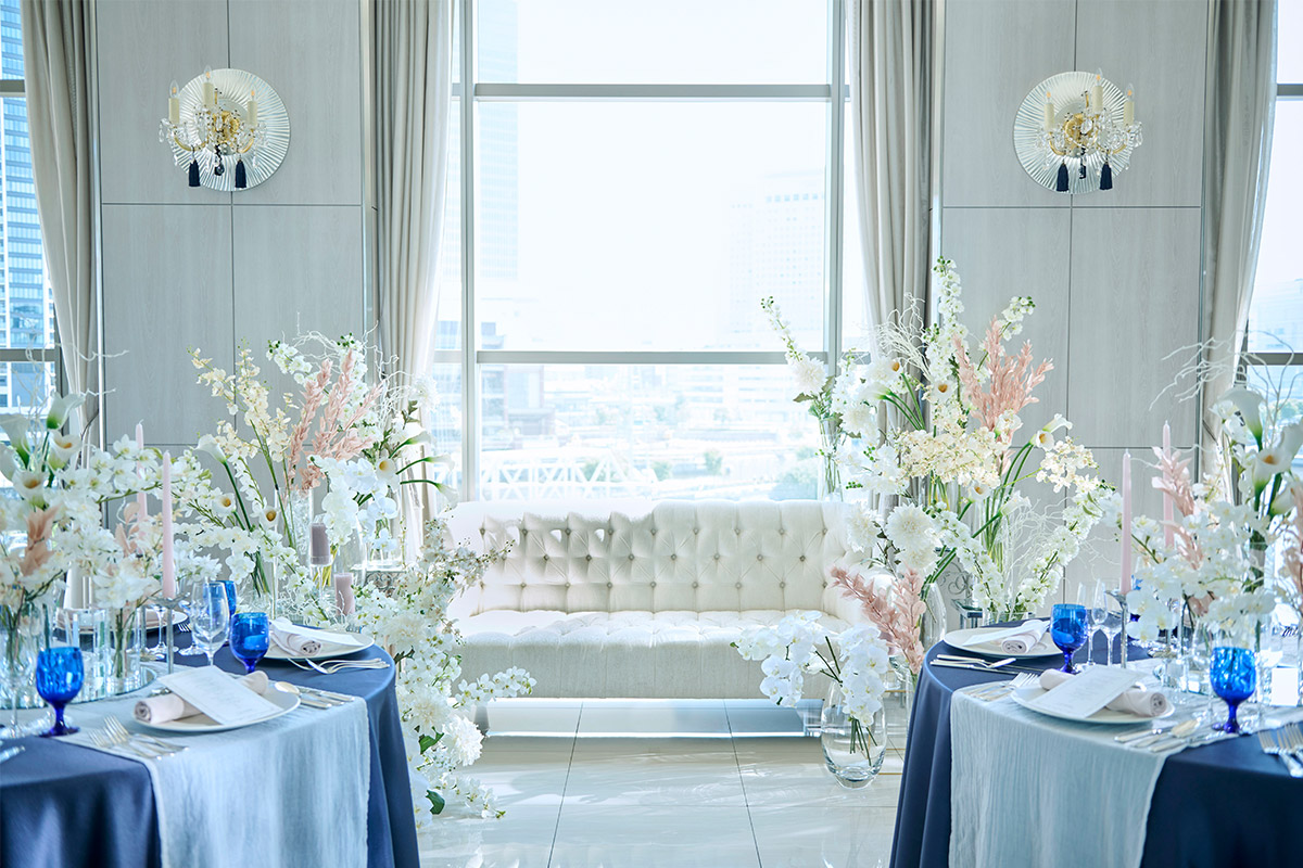 「ビブリオ」は優しいメロウな色調のスタイリング。 「本」を意味するラテン語で、これから始まるおふたりの物語を紡ぐ、祝福の空間を演出します。