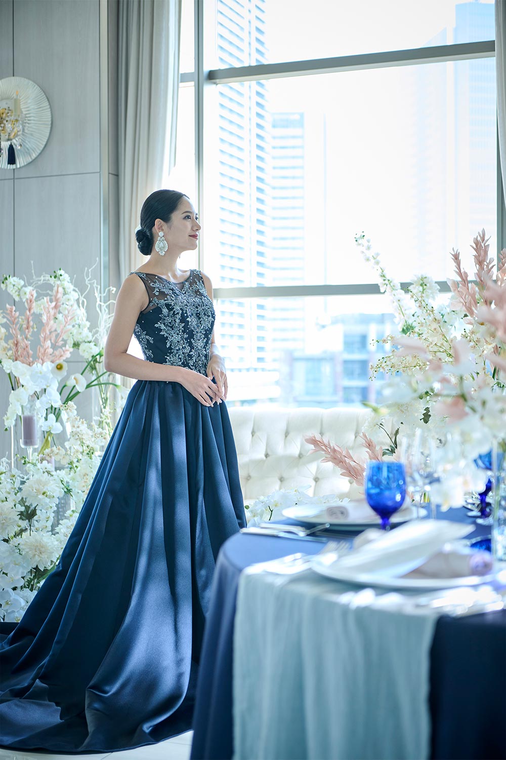 トレンドカラーとアクセントカラーの組み合わせでブルーを取り入れた「スウィート オア ビター」
