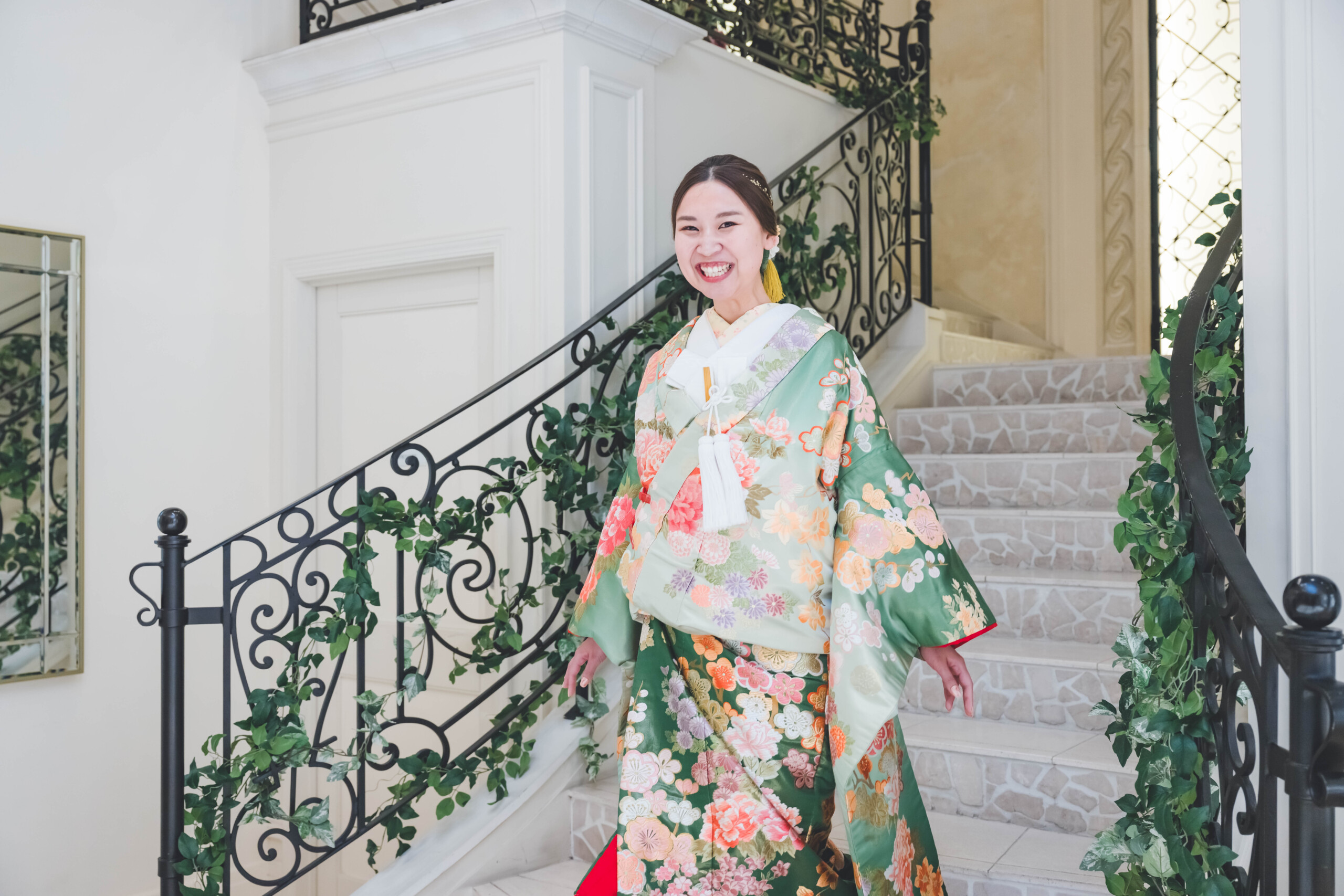フェアで見学にお越しいただいた際からご希望だったのが 「和装」でのお色直し 春らしさ溢れる綺麗なお色味の色打掛で ゲストとたくさんの写真を残しました**