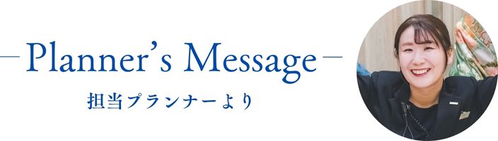 ●おふたりとの想い出 初めましてのお打ち合わせから、 笑顔が素敵で明るく「こんにちは!」と仰ってくださった姿を今でも鮮明に覚えています。 お打合せの中でたくさん【トキメキ】という言葉が出ていたおふたり。 決断力があり、これにします!と即決していくことがほとんどでしたが、 アイテムや進行決めの際に迷うこともありました。 でも迷った時こそ「トキメクのはこれだね!」と3人で笑った時間が印象的です。 時には真面目に、時には話が脱線し爆笑することもありましたが、 どんなときも笑顔がたえない時間が楽しかったです。 ●結婚式エピソード お打合せの際に、和装でお色直しを行ったらゲストはどんな反応するかな!とお話していましたが、 ゲストの皆様もまさか和装とは思っていなかったようで、 会場内では「何色かな?」「黄色かな?」なんて会話が繰り広げられていました。 楽曲に合わせ扉があいた瞬間、スポットライトを全身に浴びながらご入場されたおふたりを見て ゲストからの「わあ!!」という歓声は鳥肌もので、予想よりも大きな反応に私まで笑顔があふれました。 再入場後の各卓写真では「びっくりした!似合っているね!」というゲストからの声がたくさん寄せられ、 今までで一番の素敵な笑顔のお二人を見ることができました。 ●最後に 改めましてご結婚おめでとうございます! 当日は晴天にも恵まれ、たくさんのゲストにお祝いのお言葉をいただいているおふたりを 近くで見ることが出来てとても幸せでした。 「最初は敷居が高いと感じていた式場が愛着のある場所になっていた」という言葉をご結婚式後に伺うことができて、とても嬉しく感じました。 いつまでも【トキメキ】をたいせつに元気に幸せなおふたりでいてくださいね。 ウエディングプロデューサー 山田