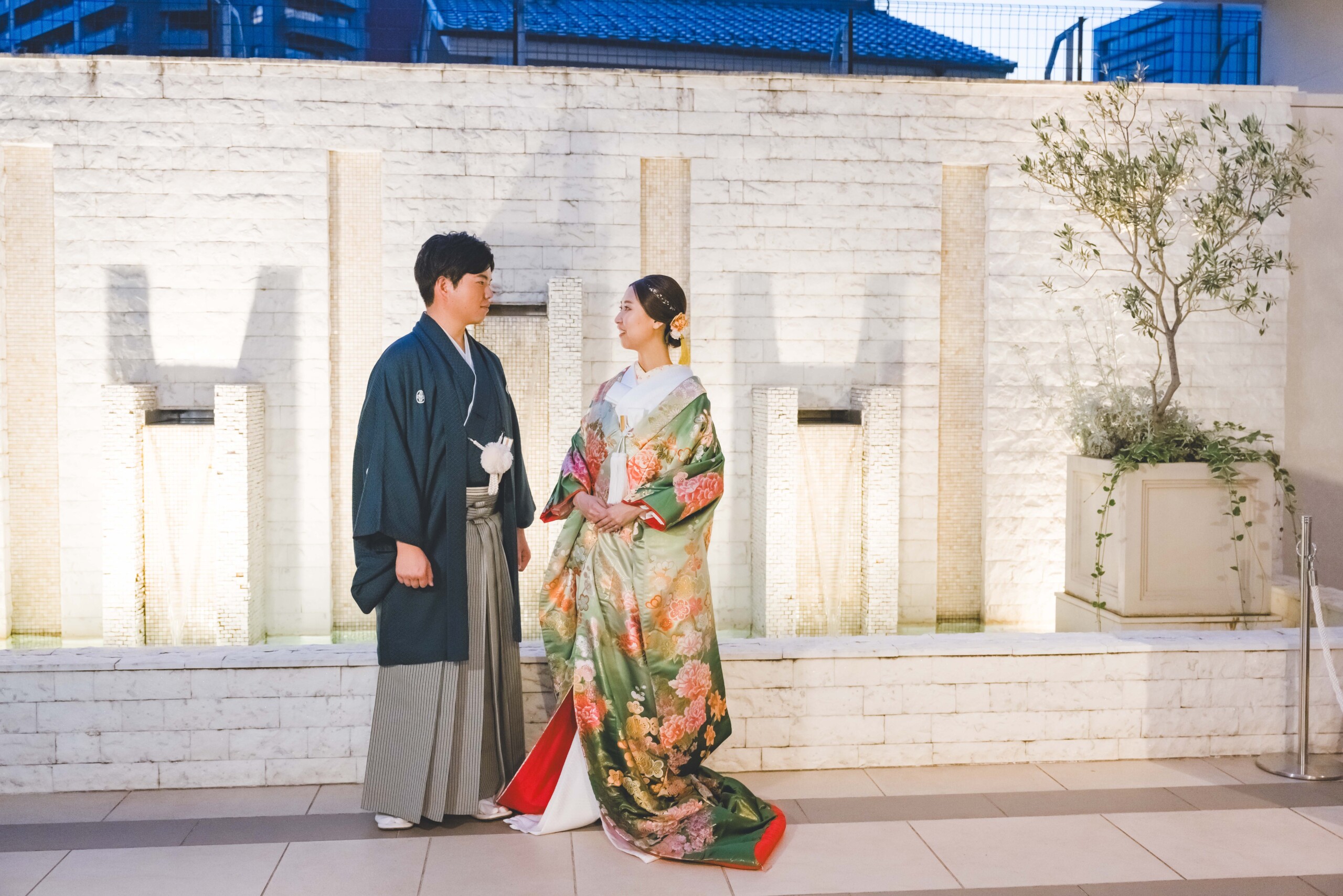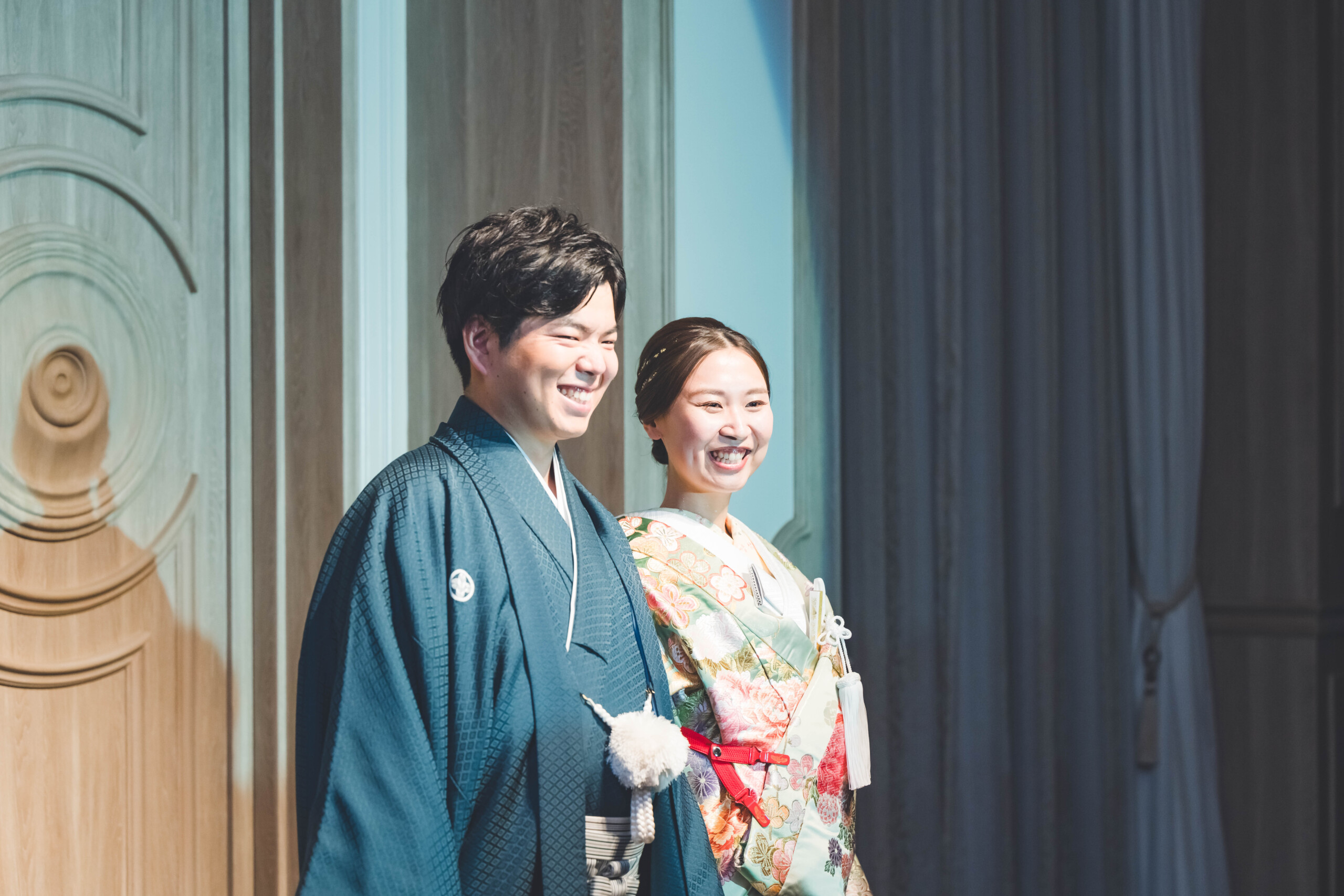 お見送り後にしっかりとおふたりだけのお写真も かけがえのない時間の余韻に浸りながら いつもよりちょっとかっこよく いつも通りのおふたりらしい表情も 最後にはスタッフも一緒に撮らせていただきました♪