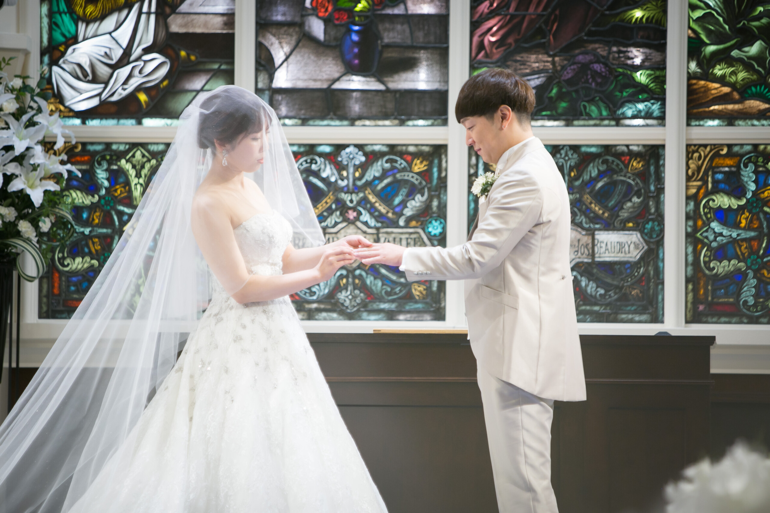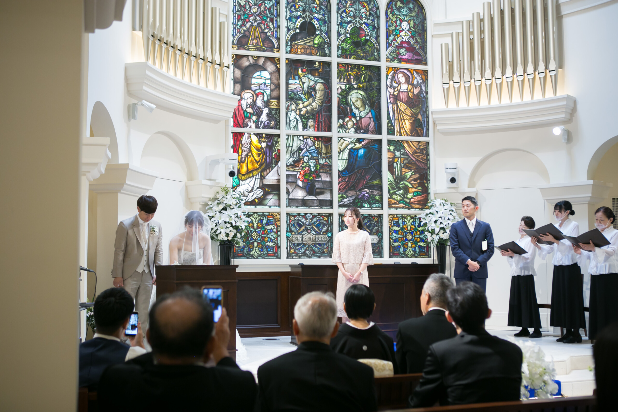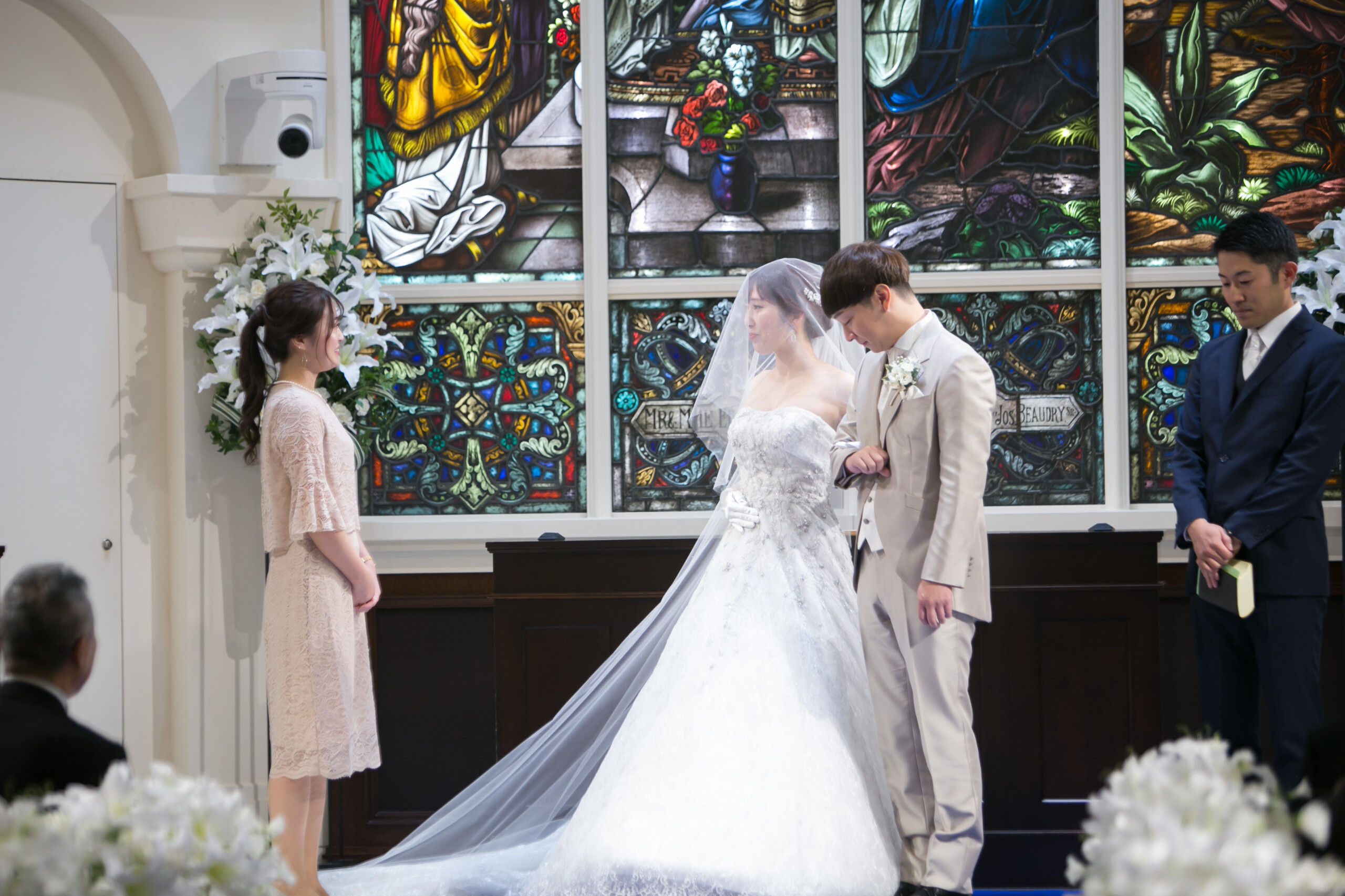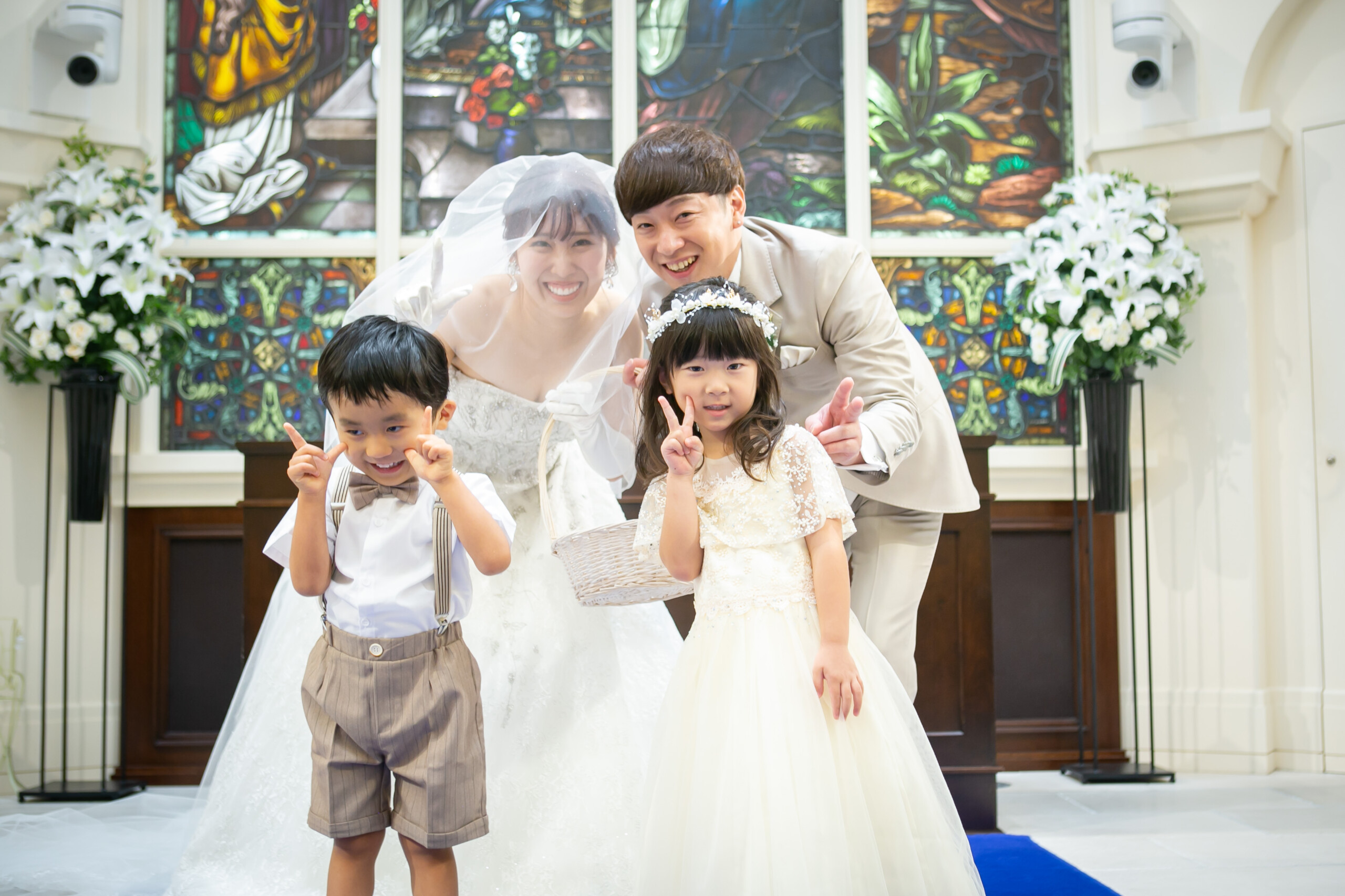 ご新郎様の姪っ子ちゃん ご新婦様の甥っ子くんのリングボーイ&リングガール ゲストが見守るなか 2人で協力して真っすぐ指輪を届けることができました♪