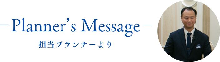 ●おふたりの印象 創造力と行動力の溢れているお二人でした 式場見学の時から具体的なイメージを共にもってくださり お好みや意志が明確であった為 悩む時もいつも前向きでいらっしゃいました 調べる力も高く 私自身が学ばせていただくシーンも随所にありました ●おふたりとの想い出 こちらからの提案に対し いつも大きなリアクションで応えていただきました とても前向きにお話ししてくださるので お喋りの時間が長くなってしまったのを思い出します 新郎新婦が大切にしたいと仰っていたウェルカムパーティの時間が始まる時は 夢の時間が始まるんだと うれし涙をこらえたことは内緒です ●結婚式エピソード おふたりの人柄がそのまま表れたような 友人や親族で隔たりがでることなく 列席した全員が結婚式を全力で楽しんでくださっていました おふたりは休む暇もないほどにゲストから囲まれていたので 逆に疲れを感じていないか心配になるほどの人気ぶりでした ●最後に ご縁をいただき とても素敵な日にご一緒できたことを心から感謝申し上げます 私にとっても わすれることの無い笑顔溢れる1日でした どうかこれからもお二人の仲が睦まじく 新郎の愛車でたくさん旅行して もっともっと幸せになっていただくことを祈っています ウエディングプロデューサー 奥山・上原・三田