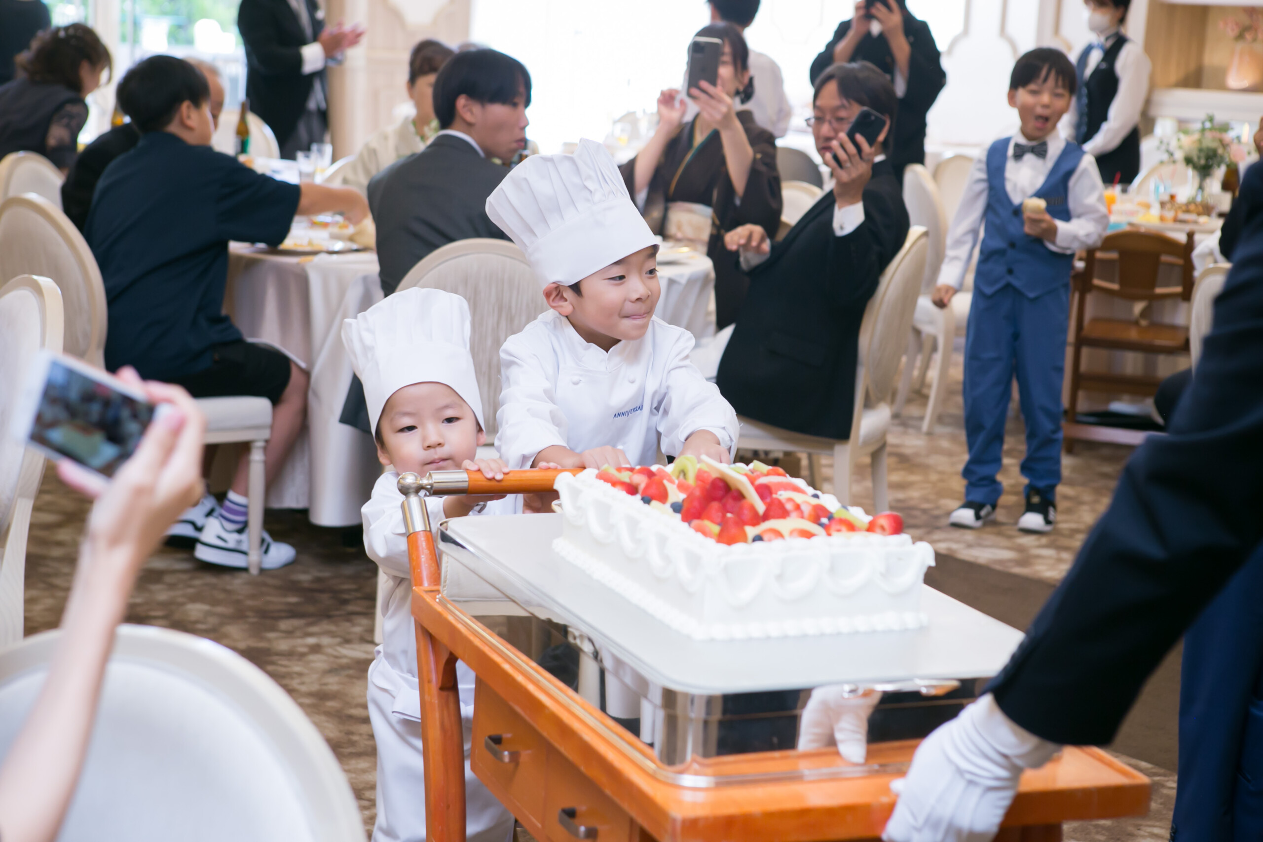 「チームお子様」による乾杯のご発声や コックコートを着用したご新郎様の甥っ子くんがケーキと共に登場など ゲストもスタッフも会場中がほっこりする演出が盛りだくさんでした♪