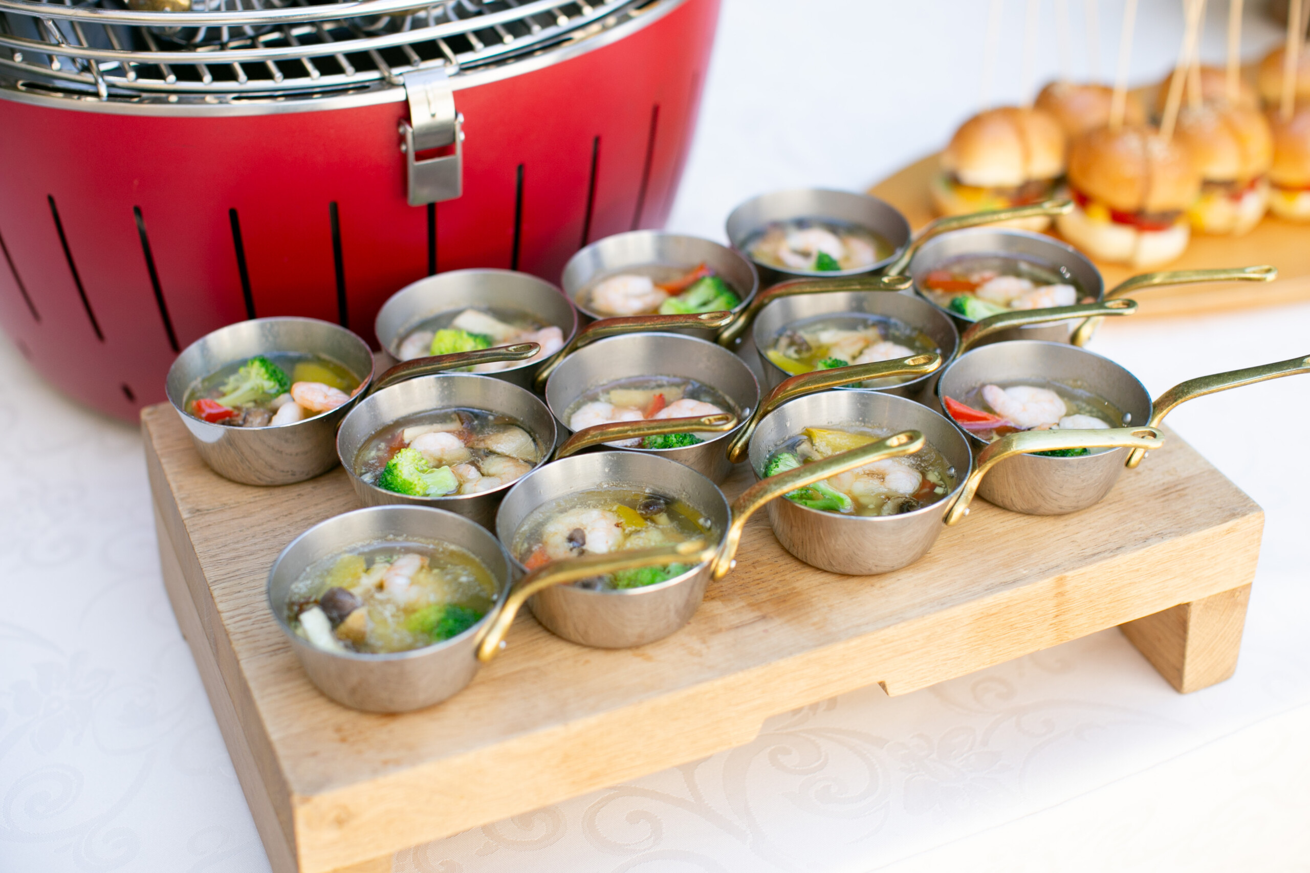 披露宴前のウェルカムパーティでは ご新婦様の出身地である群馬県の瓶ビールをご用意! さらに、ご新郎様からの背負子ビールやアヒージョでのおもてなしに ゲスト全員楽しめるお時間となりました