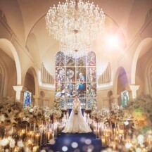 幻想的に輝くステンドグラスの本格大聖堂