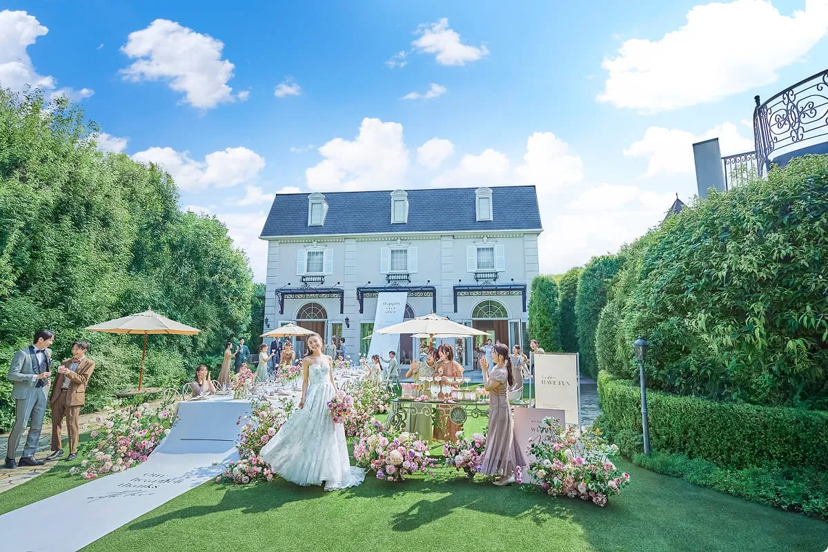 きらめくシャンデリアが彩る邸宅と、自然光あふれるコンサバトリー。華やかさと開放感が調和し、ゲストと一緒に楽しむ時間が広がります。