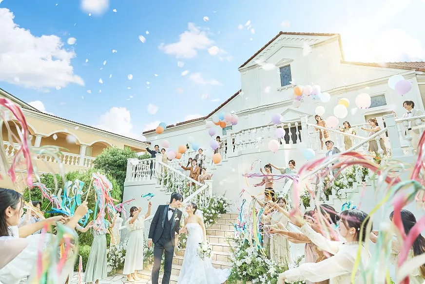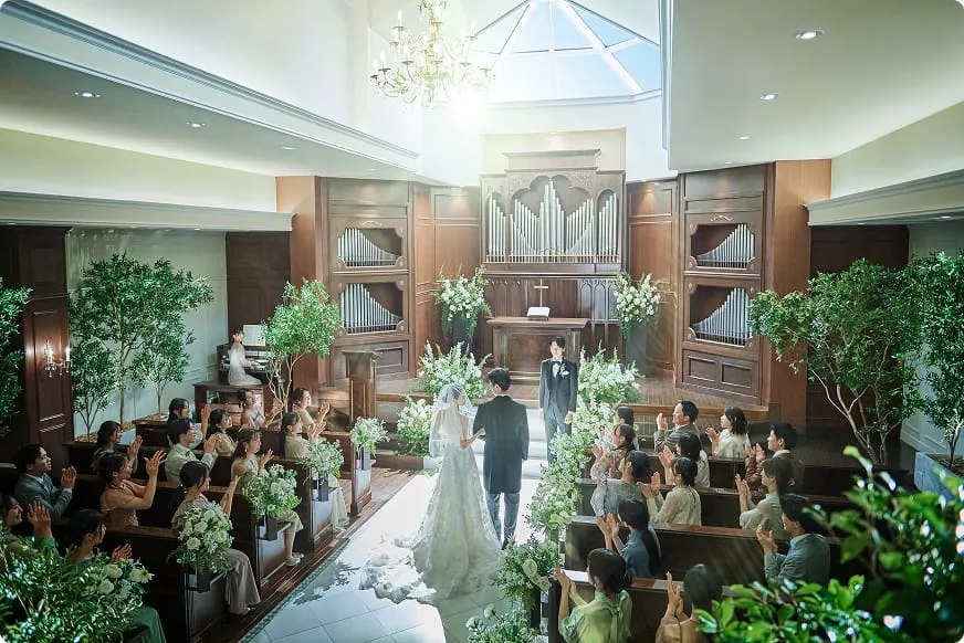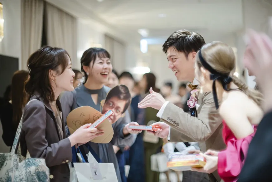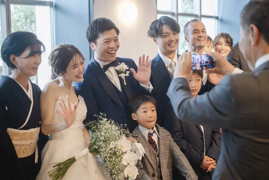ご家族から親戚、そして友人、同僚へ。人生で出会った順に祝福を受けられるよう、ゲストの並び順にもこだわっています。