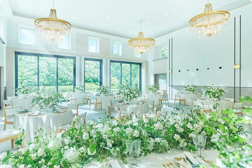 おふたりのテーマにあった、オリジナルのコーディネートを。会場貸切だから、さまざまなアイデアで会場を装飾できます。