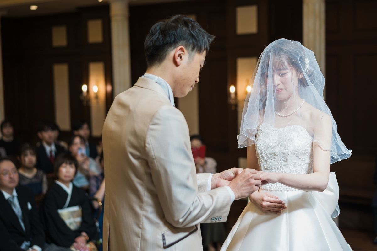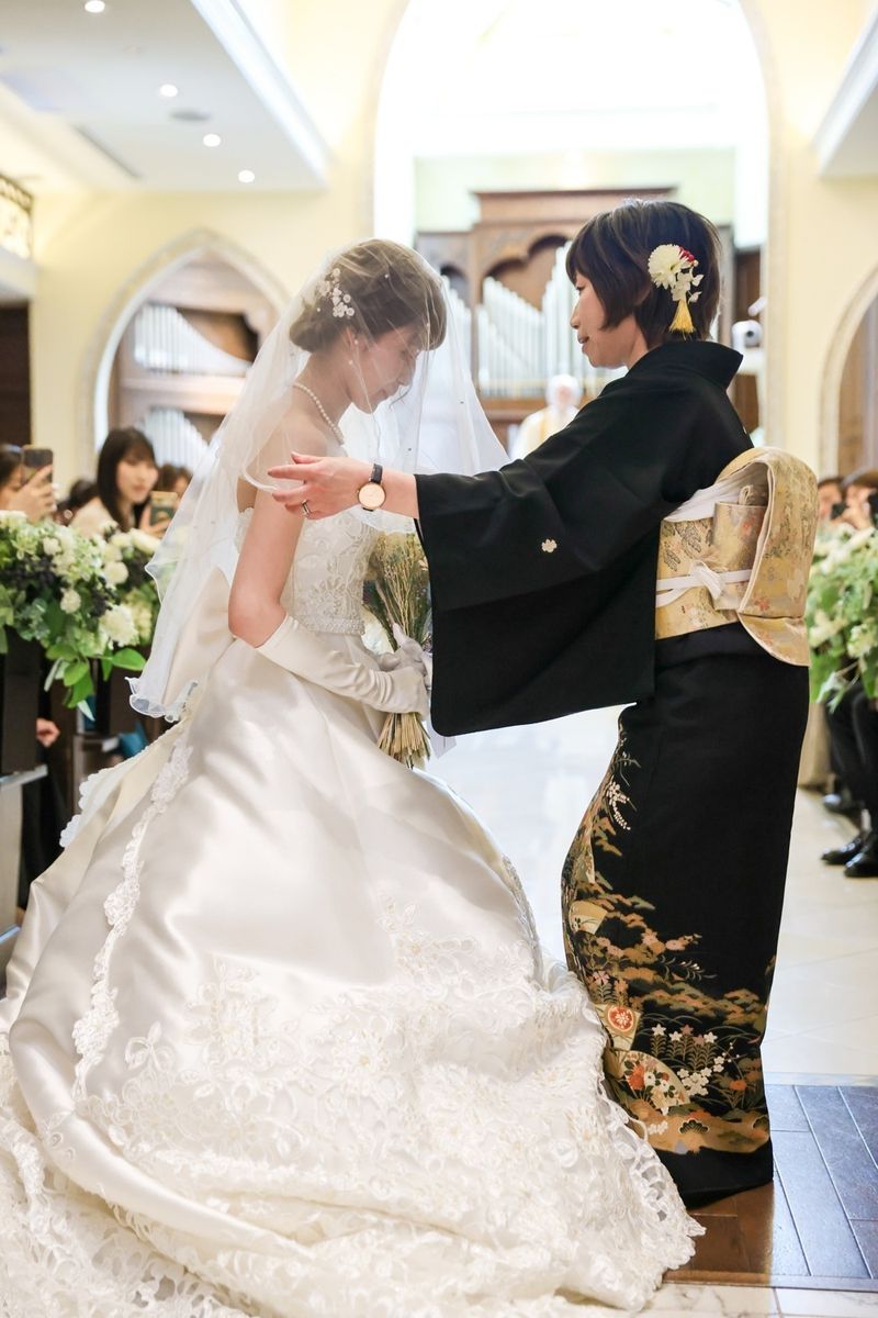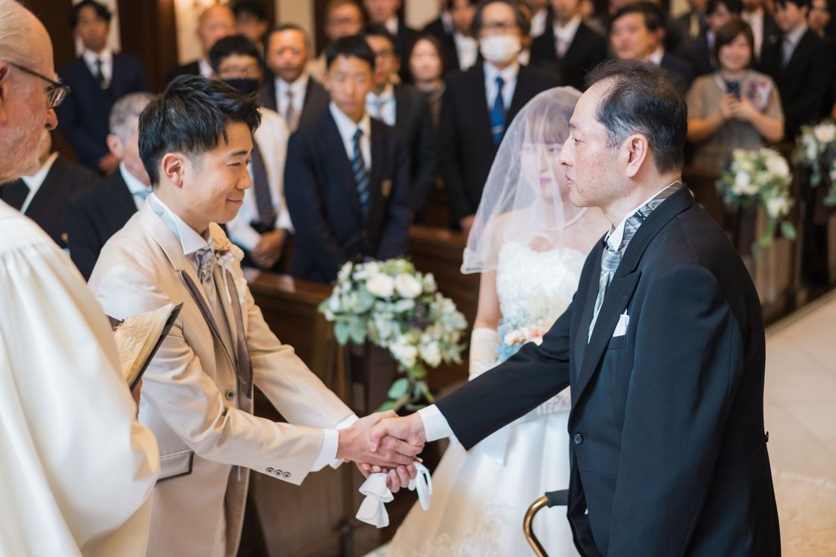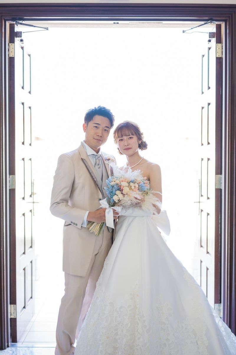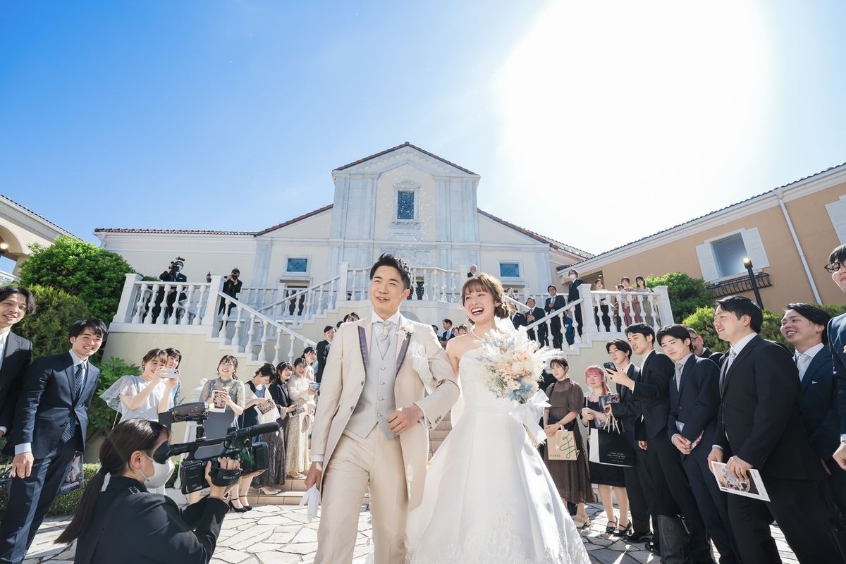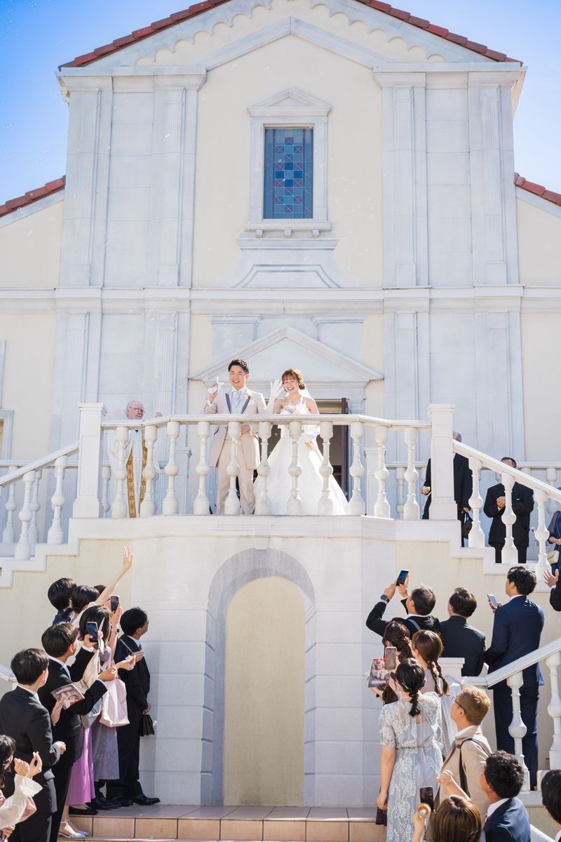 式場の正面にパイプオルガンがあるところ、床が白くご新郎ご新婦の姿が綺麗に反射するところが、おふたりのお気に入りポイントだそう。また、壁や椅子が木目調なところも「シンプルだけど落ち着く」と気に入ってくださいました。 当日は、ご新婦入場の前にセレモニームービーを流して、今までの人生を振り返り、感謝の気持ちを伝える演出を行ないました。感動で大号泣されているご友人もいて、印象的なシーンとなりました。