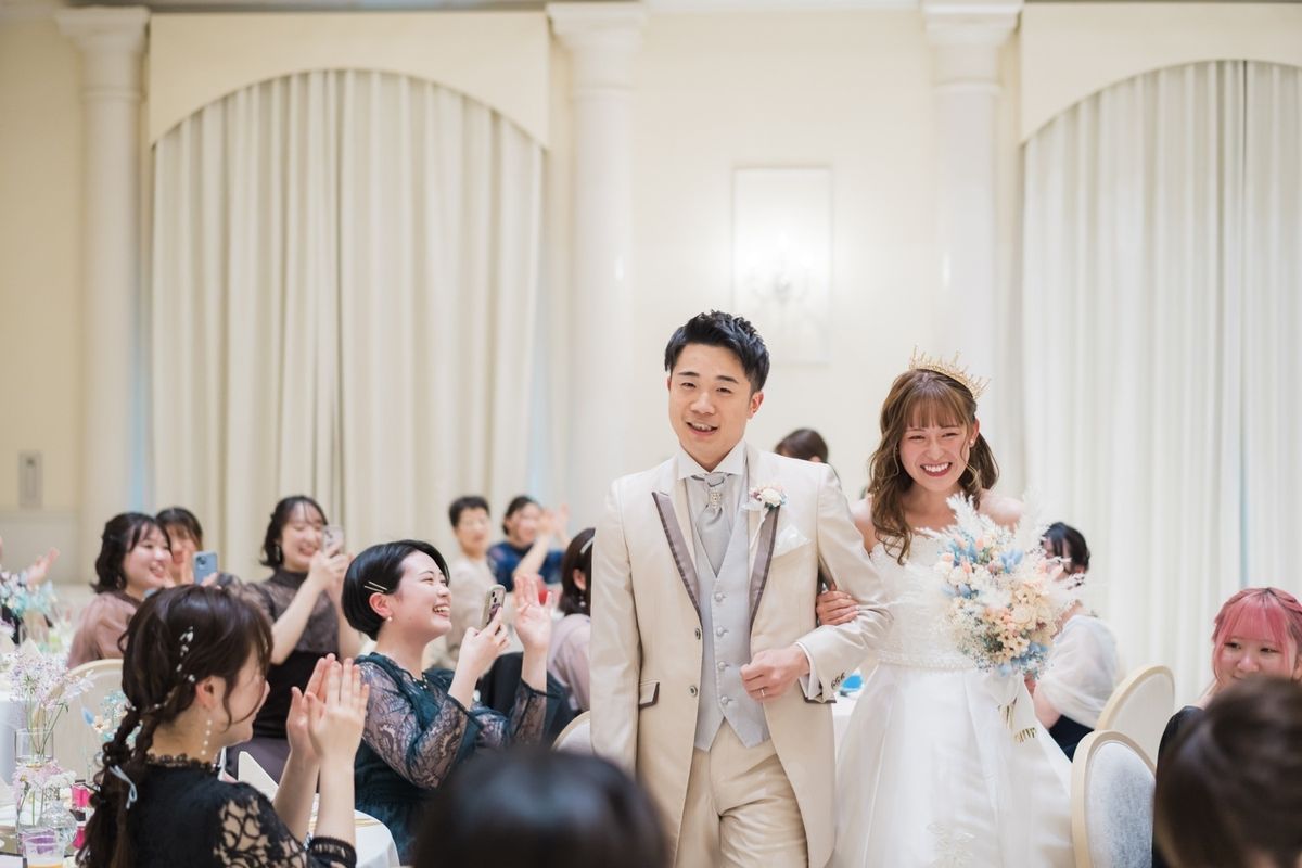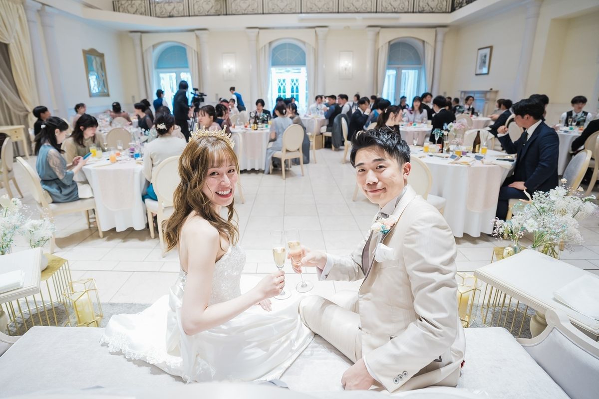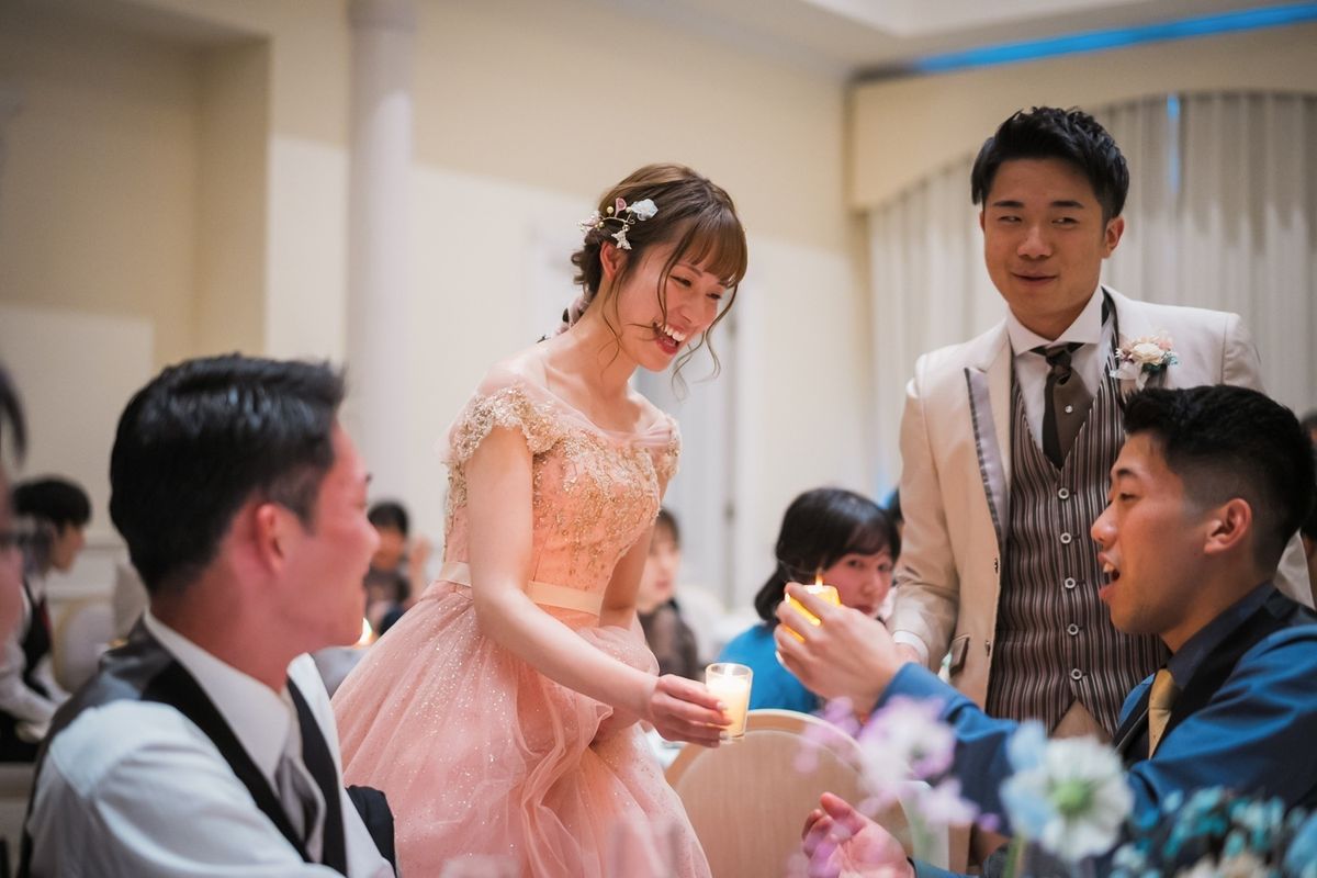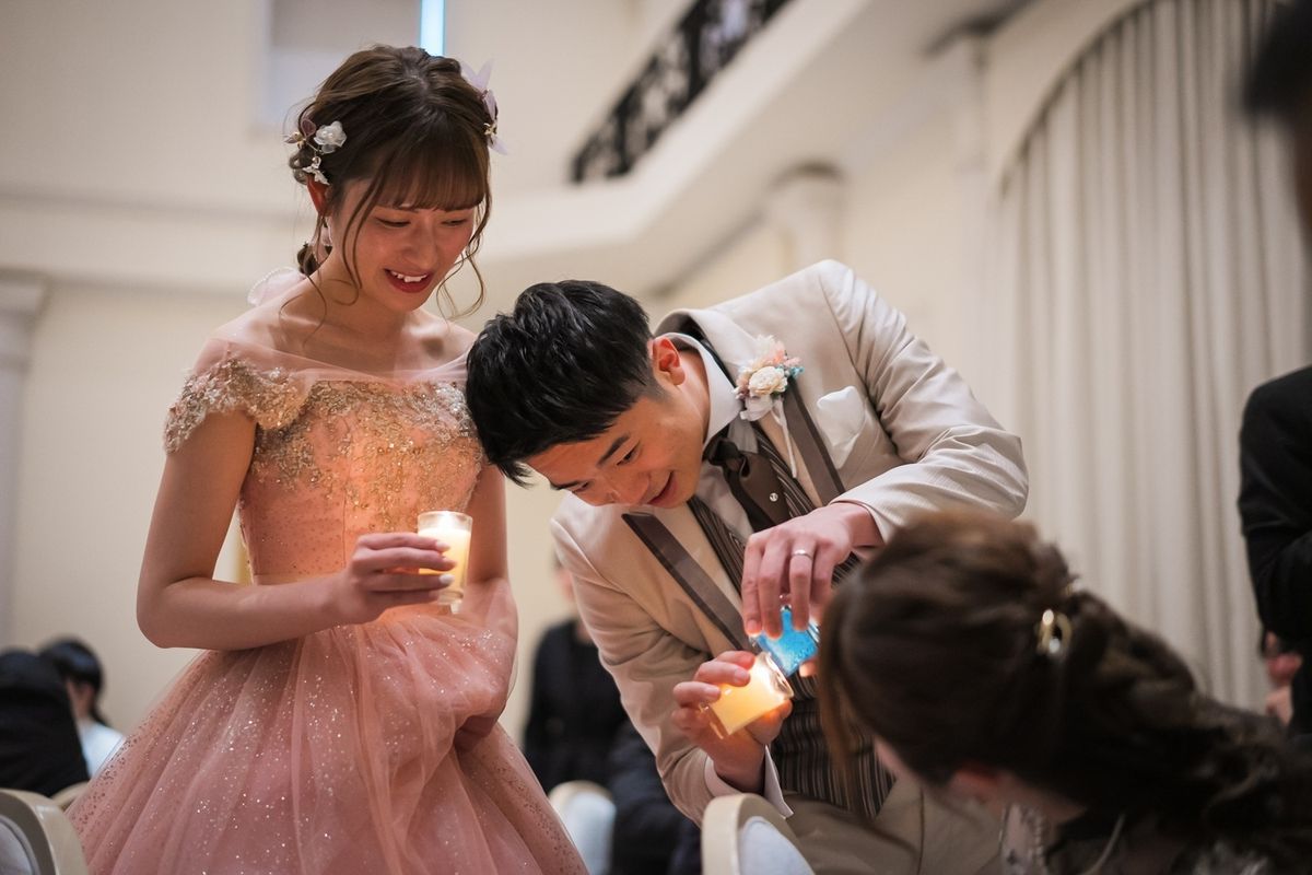 様々なことにこだわった中でも、特に印象的だった演出は、キャンドルの蓋にメッセージを書き、蓋を閉じるとメッセージが浮かび上がってくるという『クレールストーリア』です。ゲストの皆様一人一人に想いが伝わる演出に、温かな時間が流れました。 また、歓談の時間も多めに設定したことで、各テーブルで久しぶりに会ったご友人同士でお話に花を咲かせたり、高砂でおふたりと一緒に写真を撮ったり会話を楽しんだりされました。